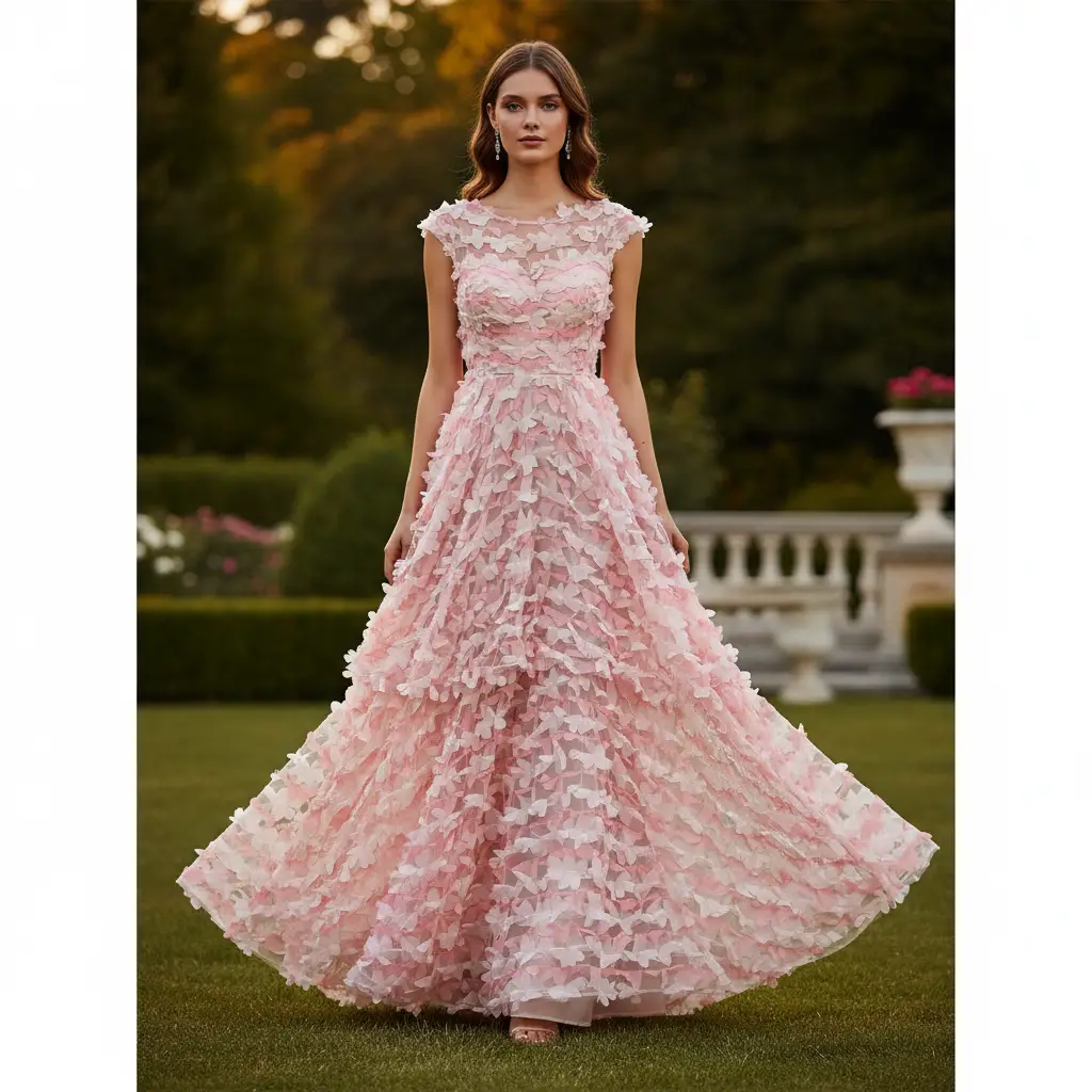 Tessuto Chiffon ricamato con fiori in 3D dalla mano morbida, voluminosa e fluente, ideale per creare capi sartoriali da cerimonia e per le grandi occasioni originali e alla moda.