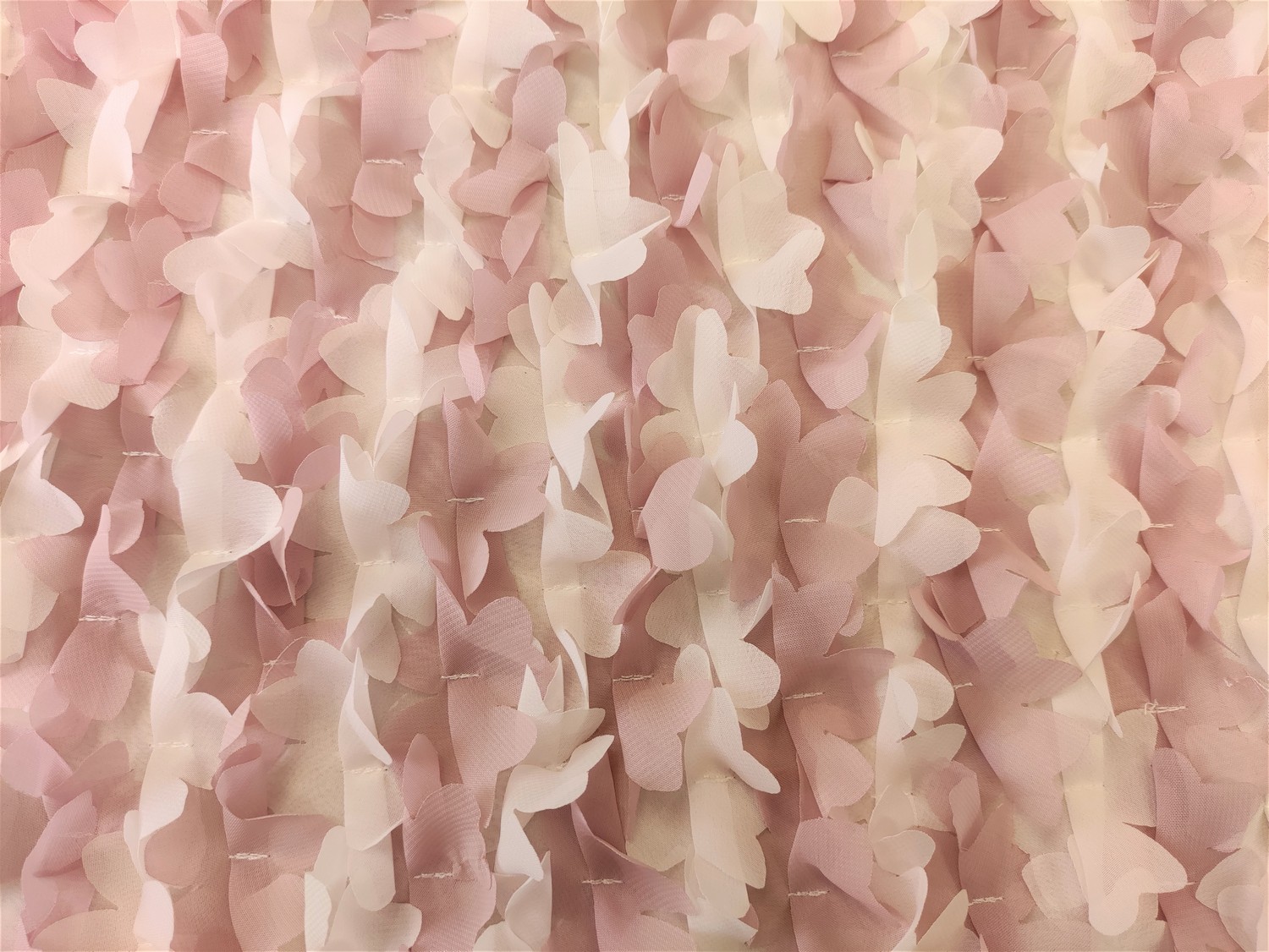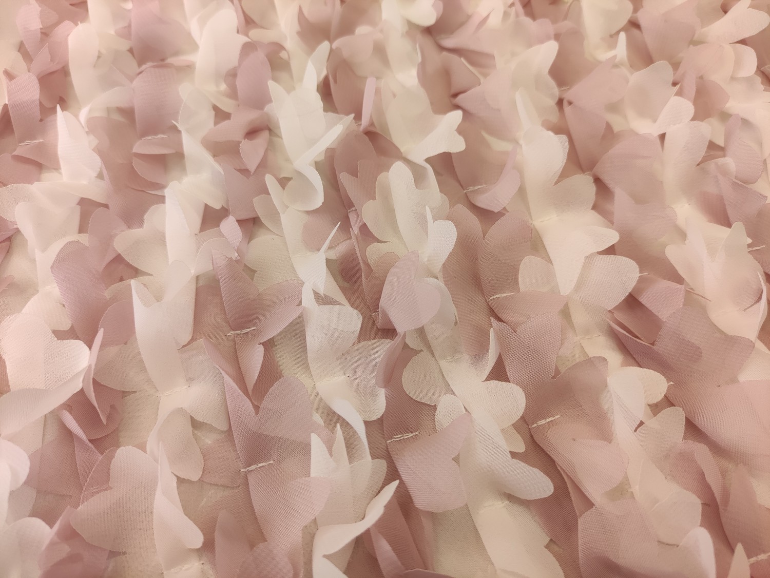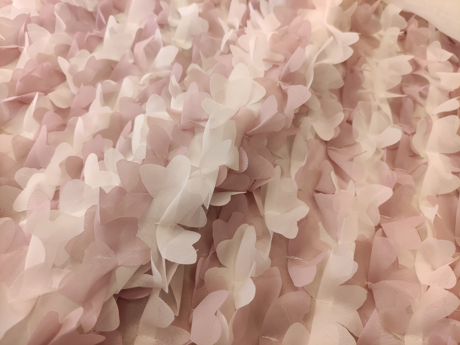 Tessuto chiffon ricamato con fiori in 3D rosa – bianco