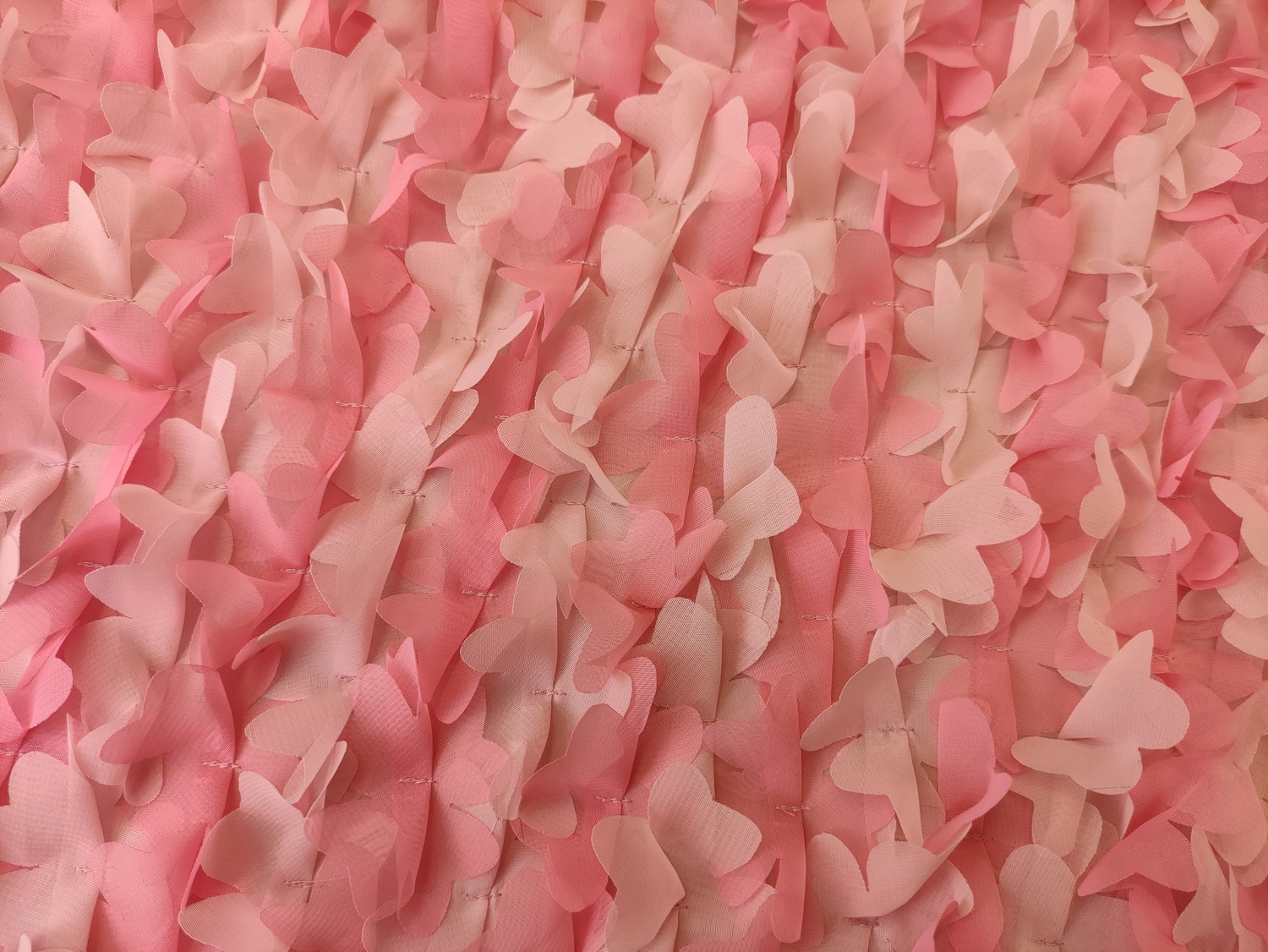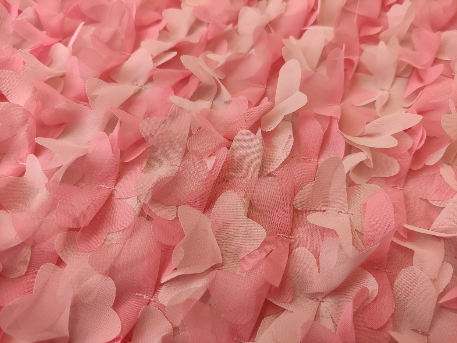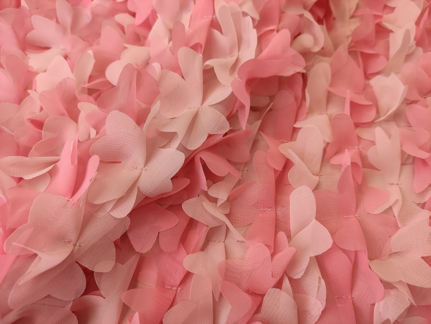 Tessuto chiffon ricamato con fiori in 3D rosa chiaro – rosa scuro