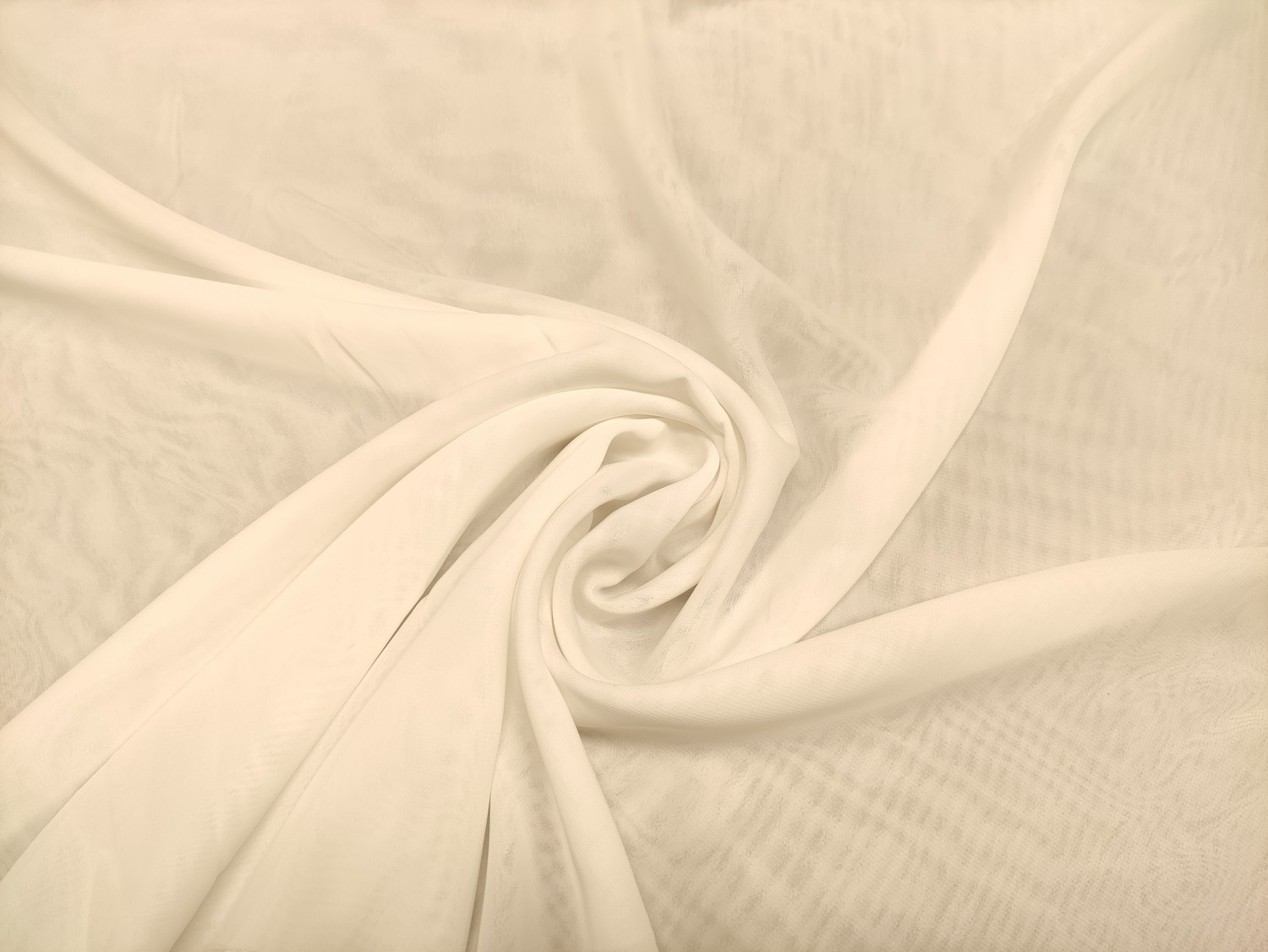 Tessuto Chiffon in tinta unita dalla mano morbida trasparente e setosa, ideale per realizzare capi morbidi e trasparenti da cerimonia o da usare tutti i giorni come: camicie, abiti, gonne, stole e spolverini.
