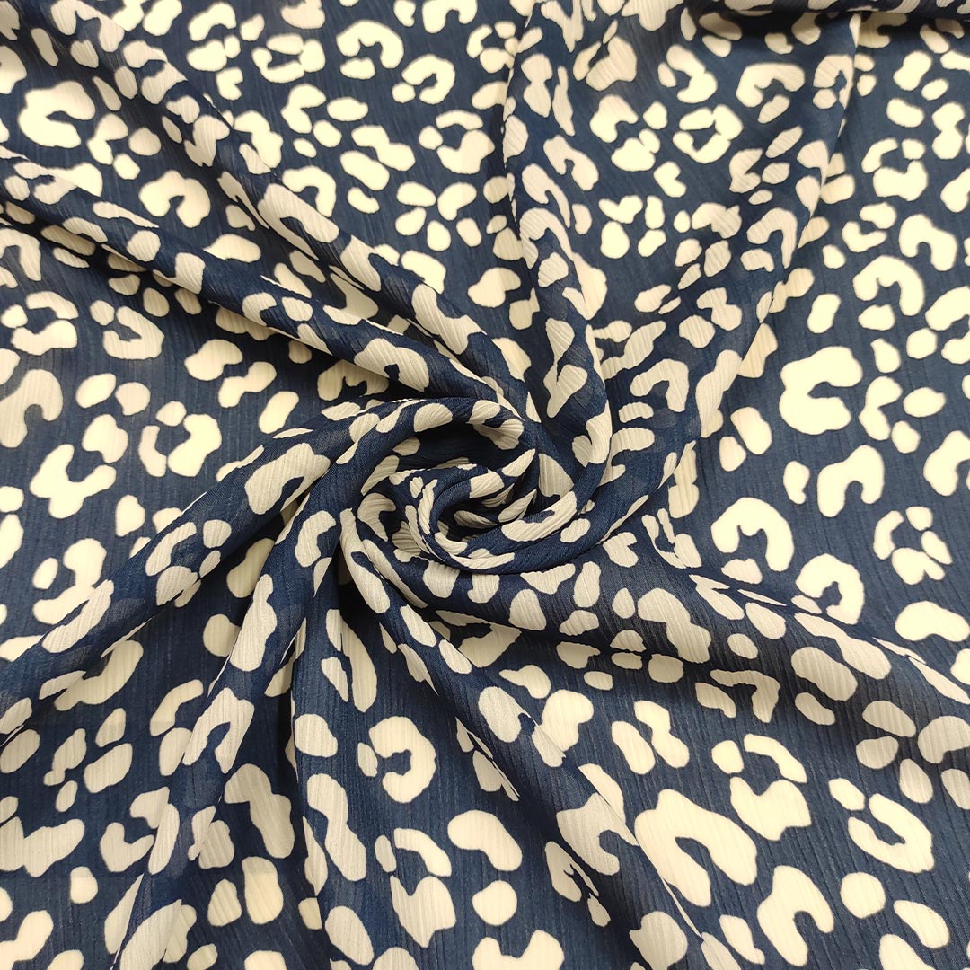 Tessuto Georgette a fantasia motivo animalier bianco – blu