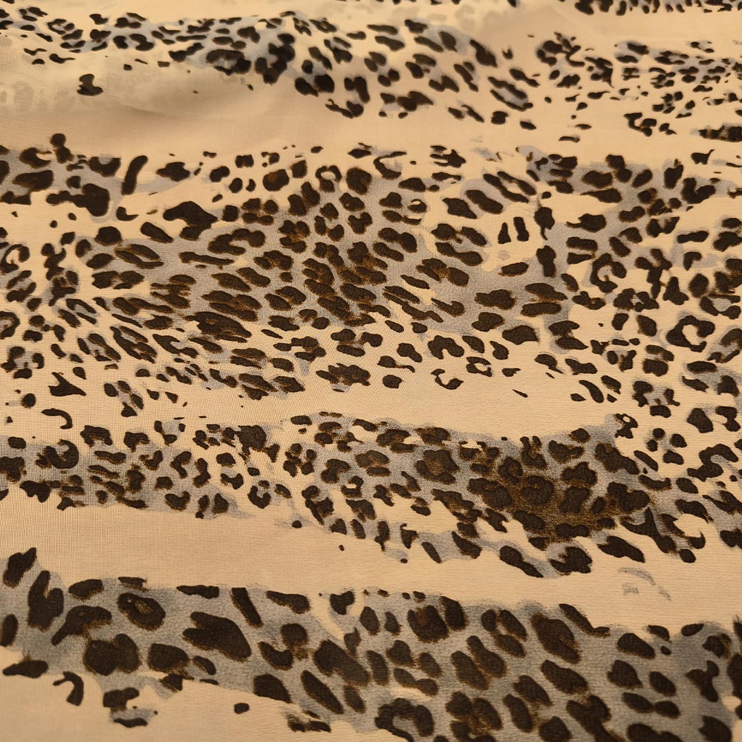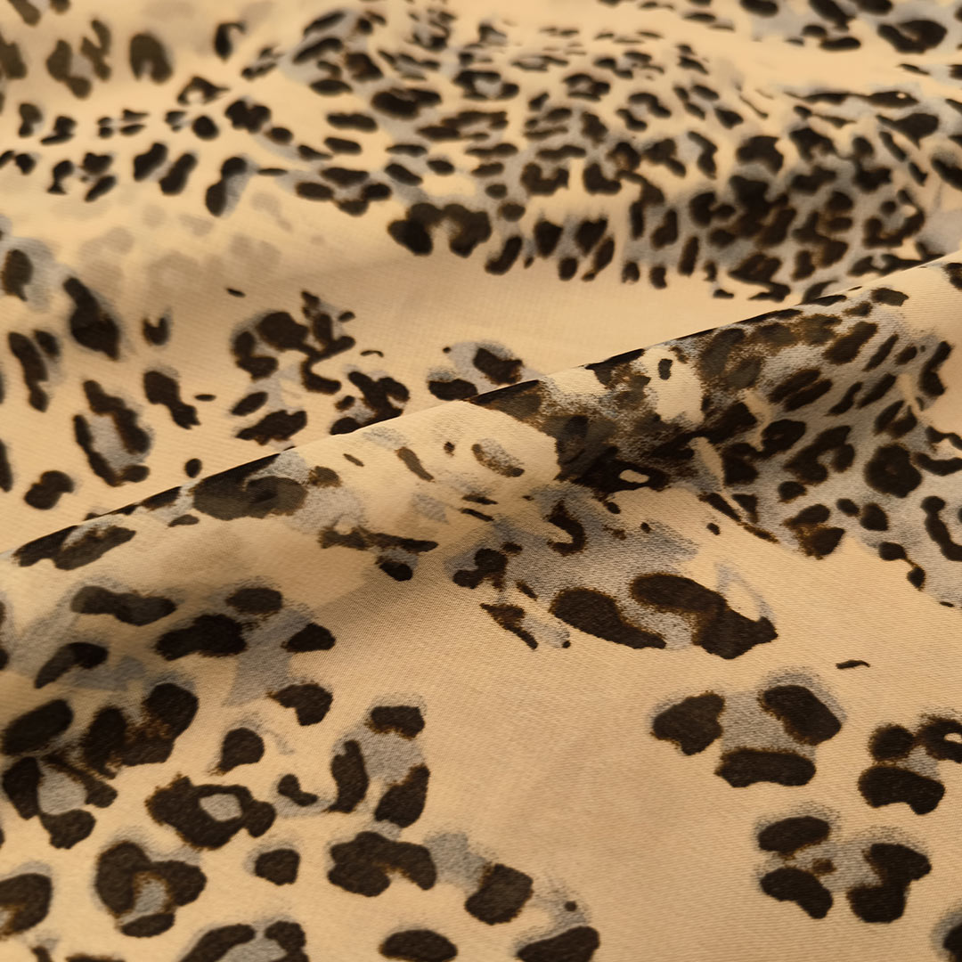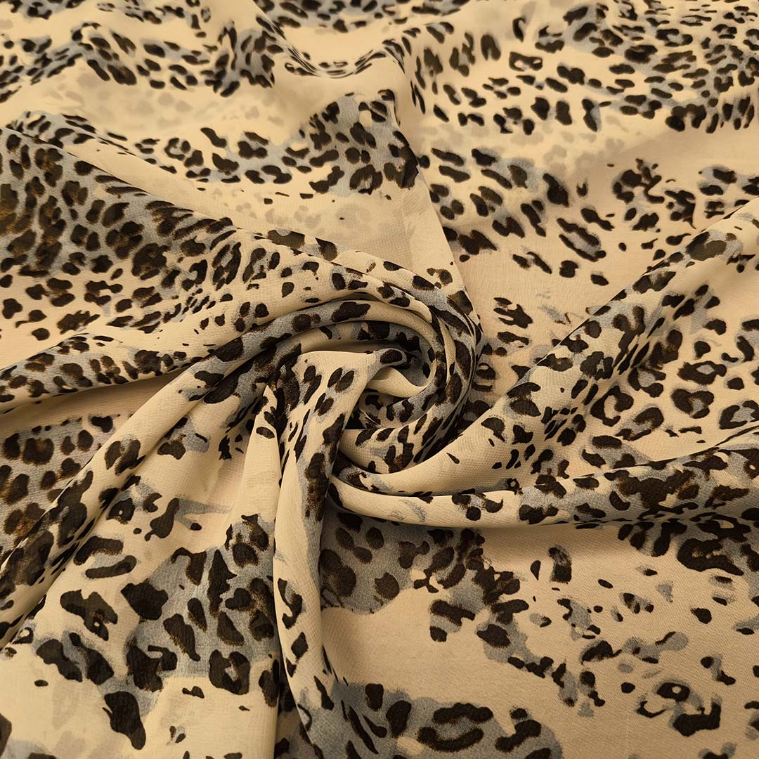 Tessuto Georgette a fantasia motivo animalier celeste – beige – nero