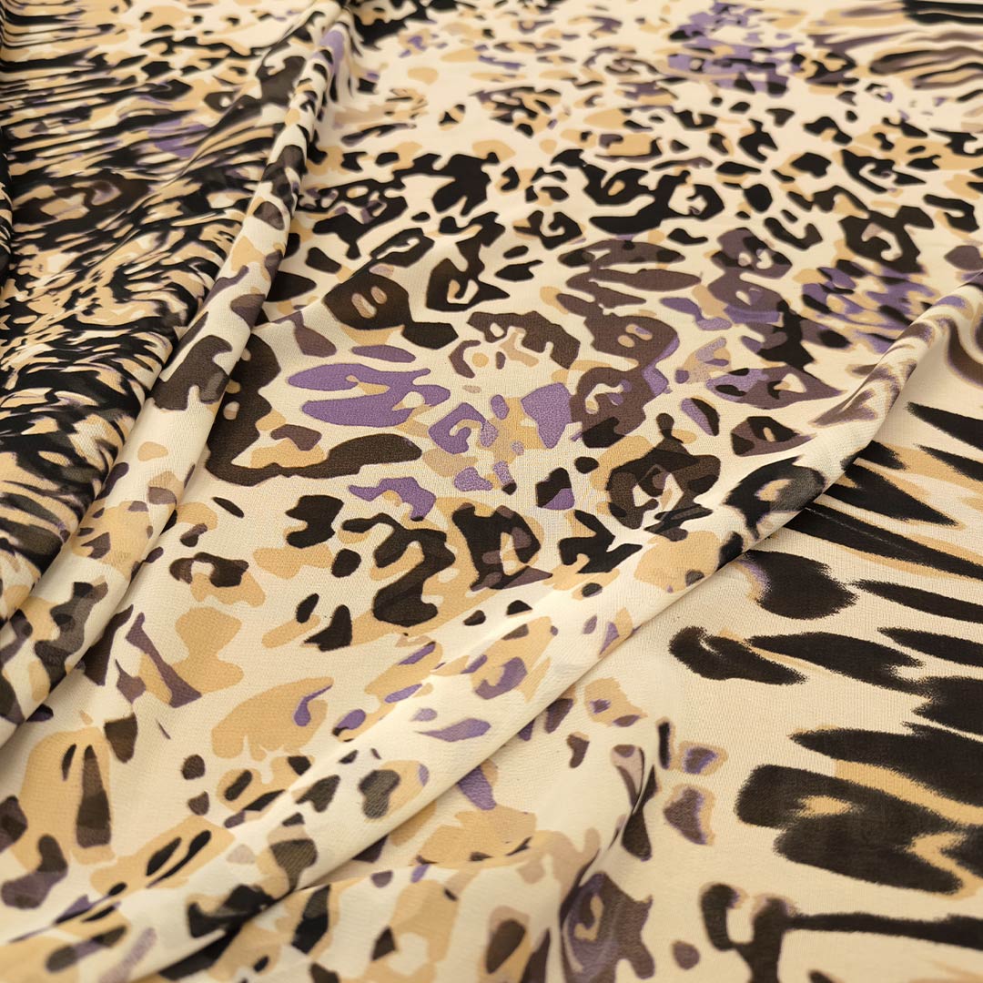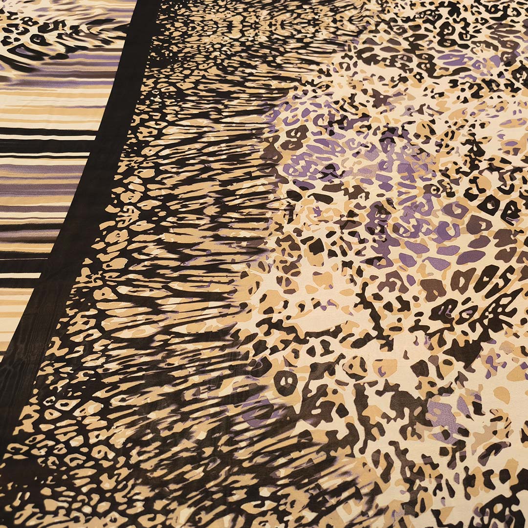 Tessuto Georgette a fantasia motivo animalier panna – lilla – nero