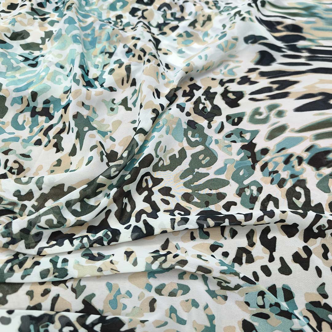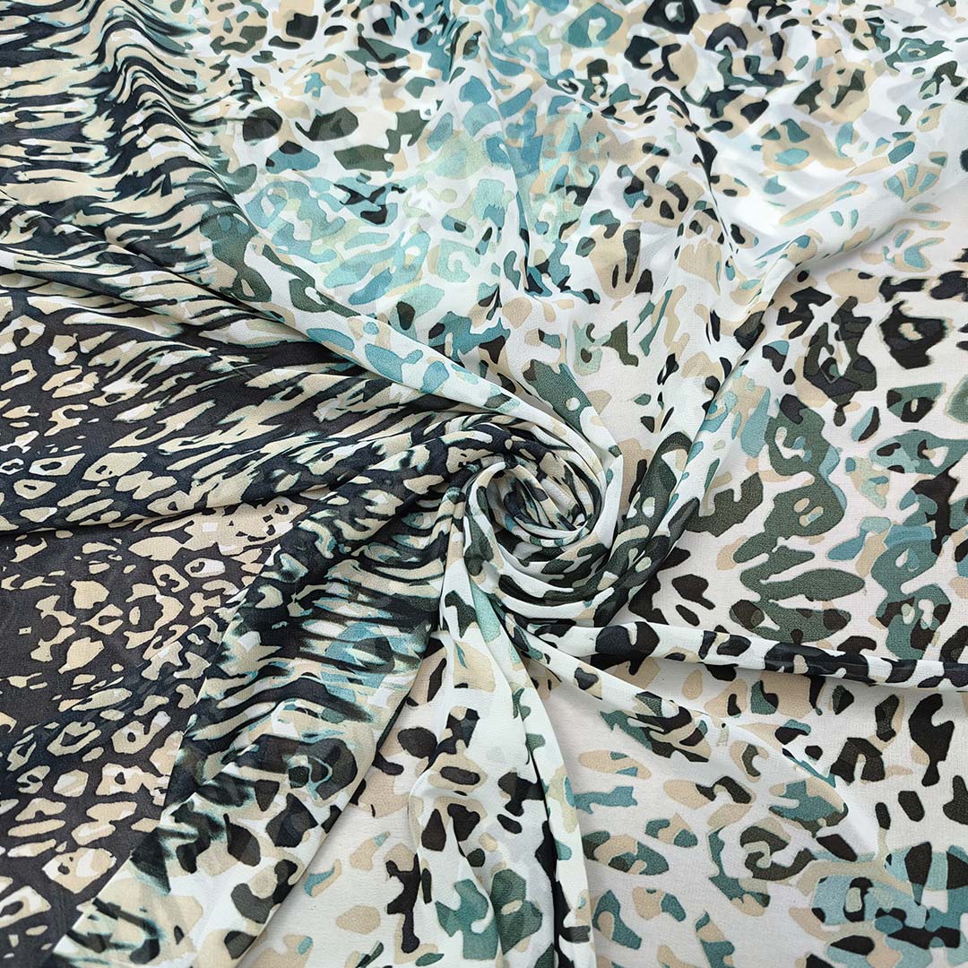 Tessuto Georgette a fantasia motivo animalier tiffany – panna – nero