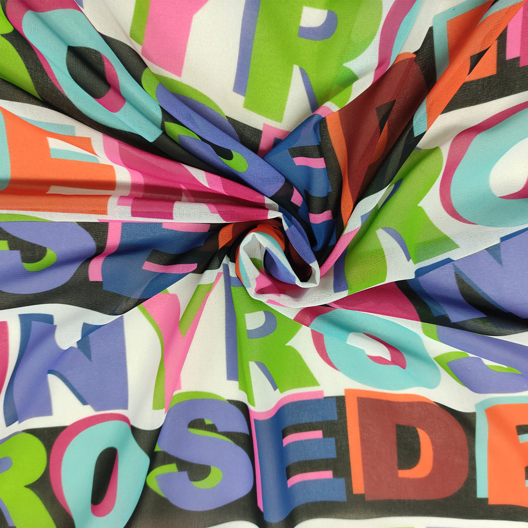 Tessuto Georgette a fantasia motivo astratto arancione – fucsia – verde – bianco