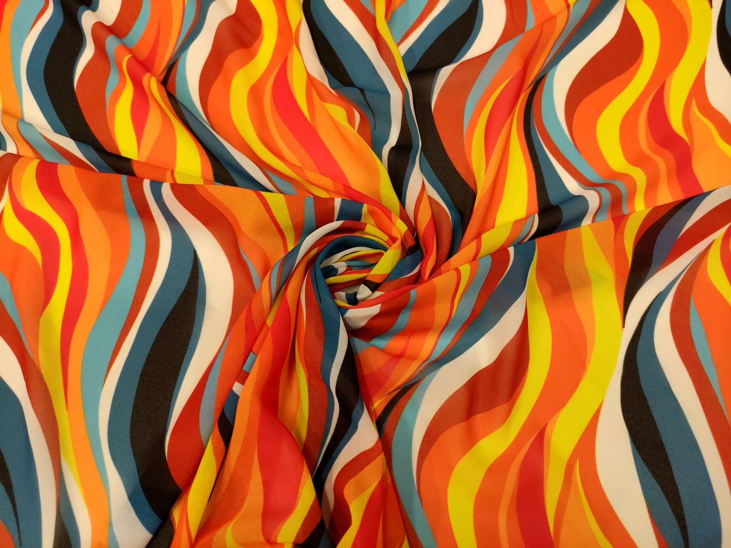 Tessuto Georgette a fantasia motivo astratto arancione – giallo – carta da zucchero