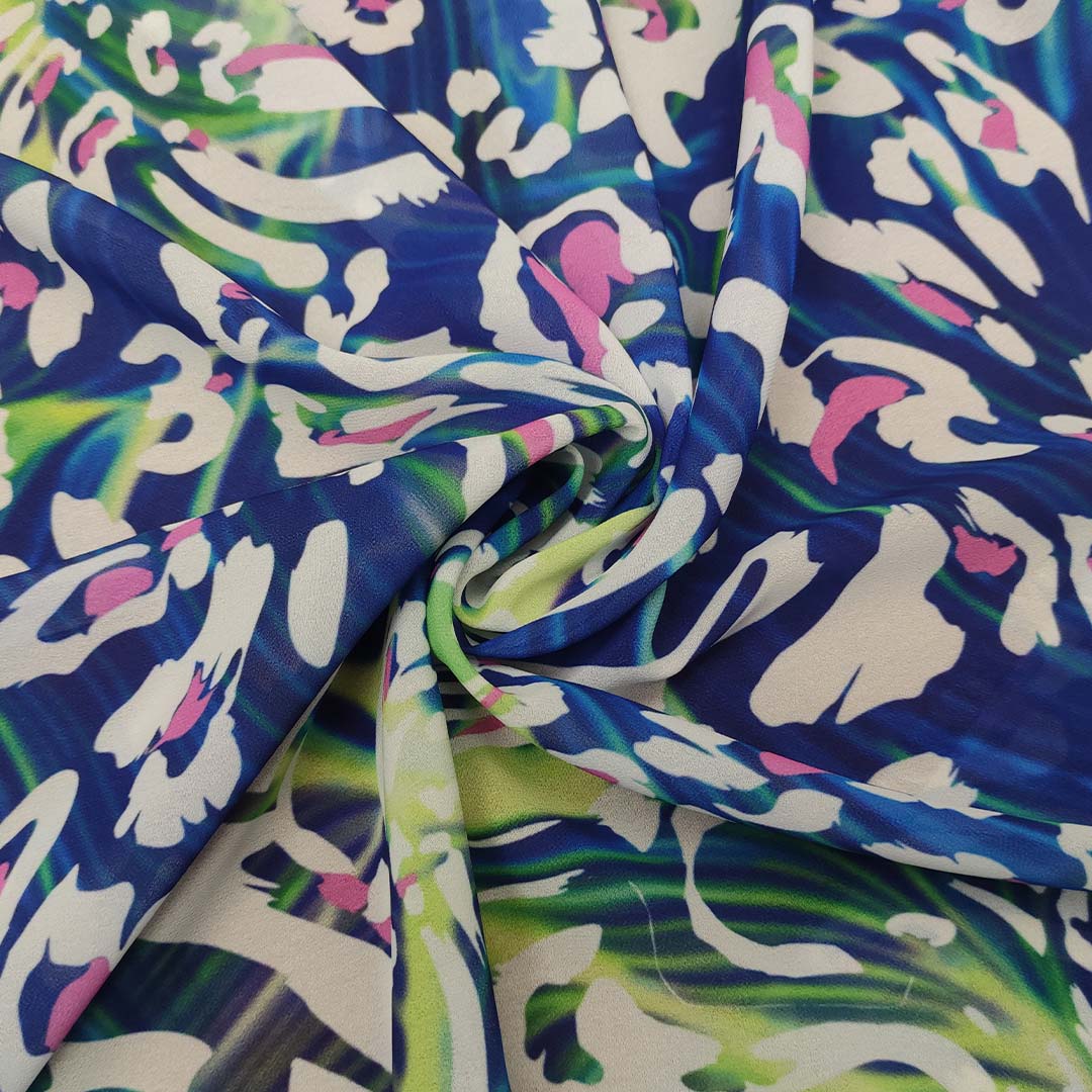 Tessuto Georgette a fantasia motivo astratto blu – verde – bianco
