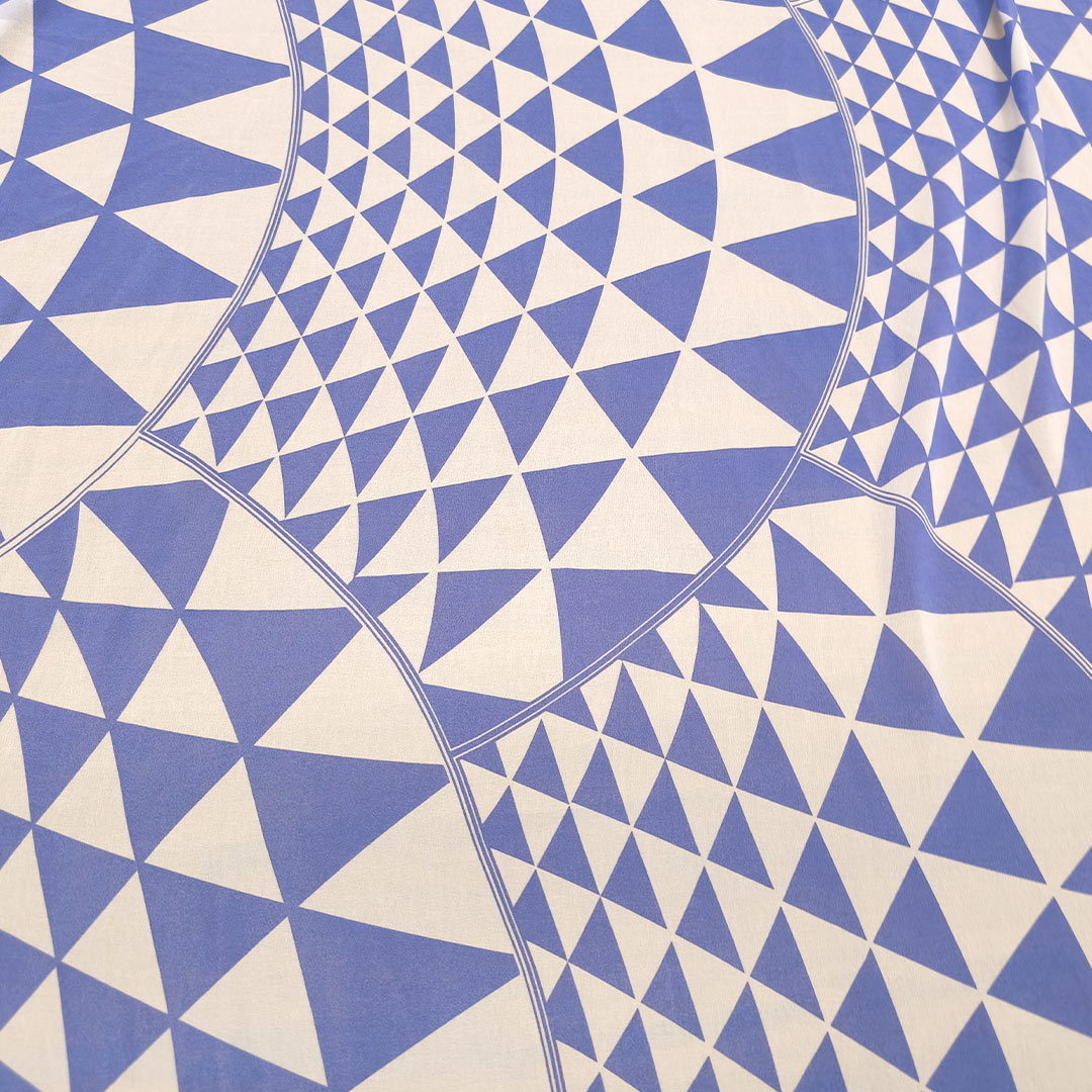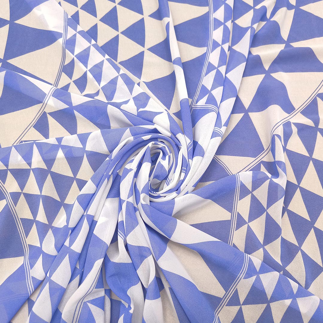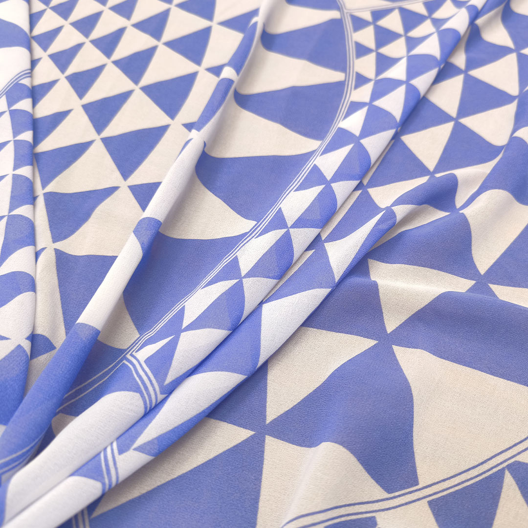 Tessuto Georgette a fantasia motivo astratto celeste scuro- bianco