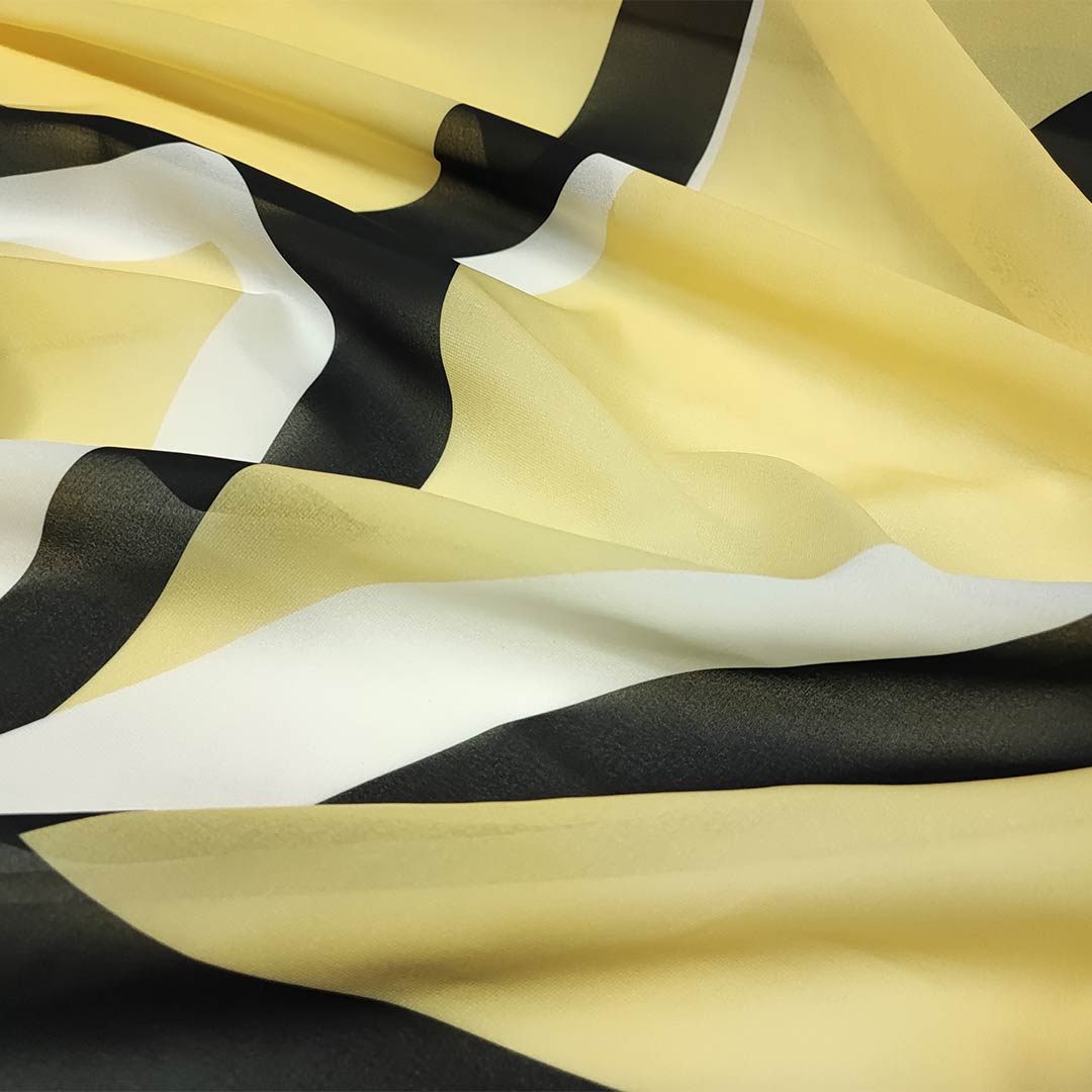 Tessuto Georgette a fantasia motivo astratto giallo – nero – bianco