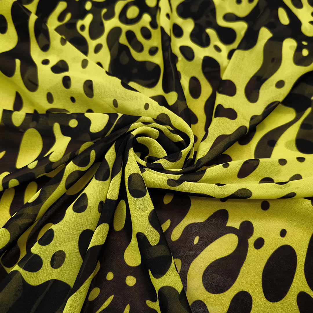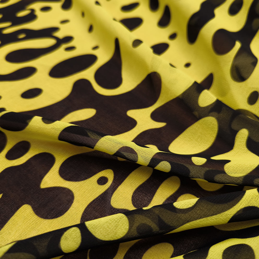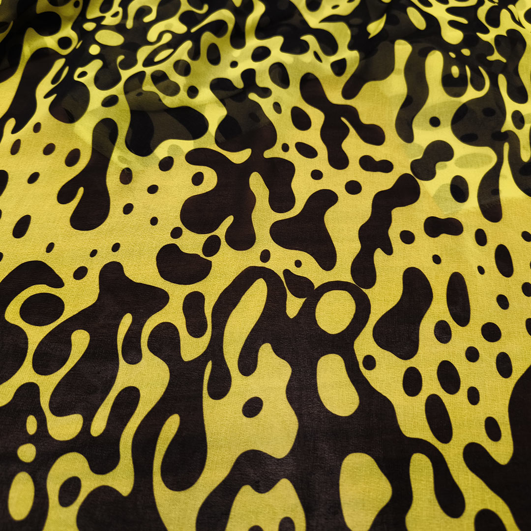 Tessuto Georgette a fantasia motivo astratto giallo – nero