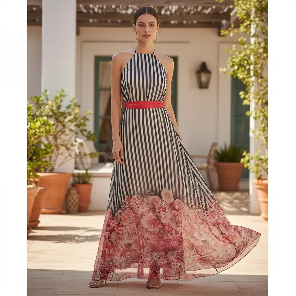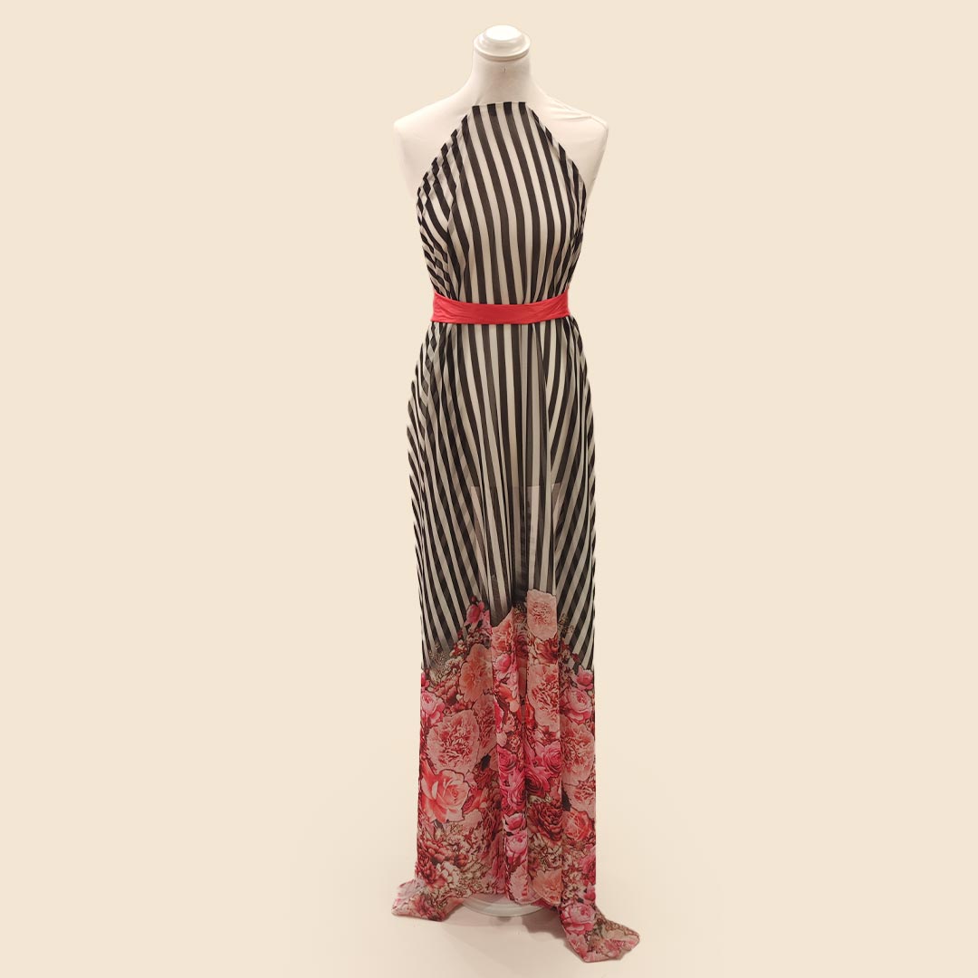 Tessuto Georgette a fantasia dalla mano fine, morbida e granulosa, leggermente trasparente, si presta alla realizzazione di camicie, abiti, gonne e bluse.