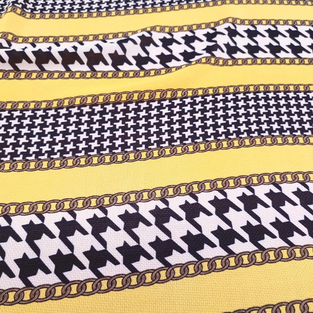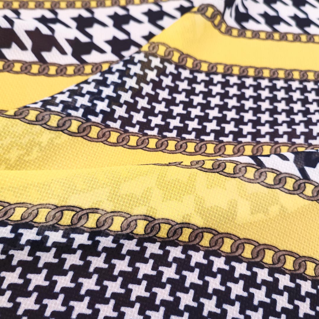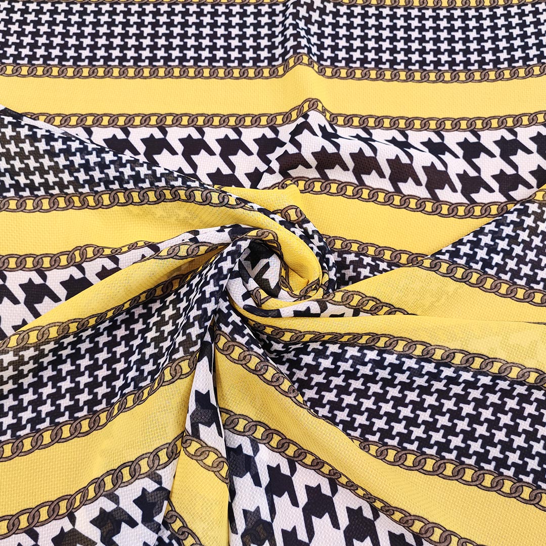 Tessuto Georgette a fantasia motivo astratto nero – giallo – bianco
