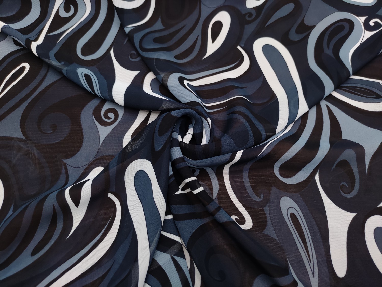 Tessuto Georgette a fantasia motivo astratto nero – grigio