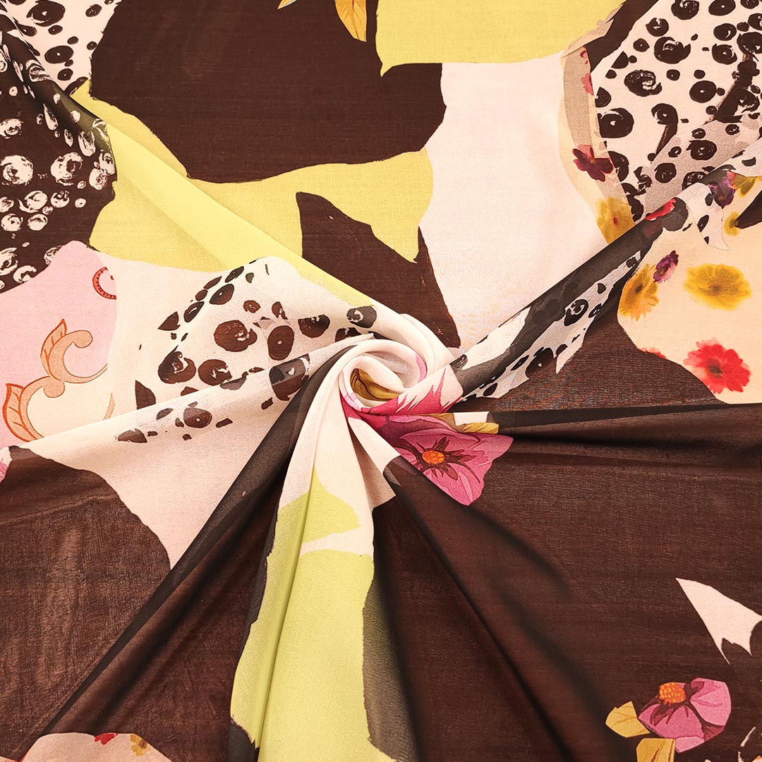 Tessuto Georgette a fantasia motivo astratto nero – lime – vinaccio