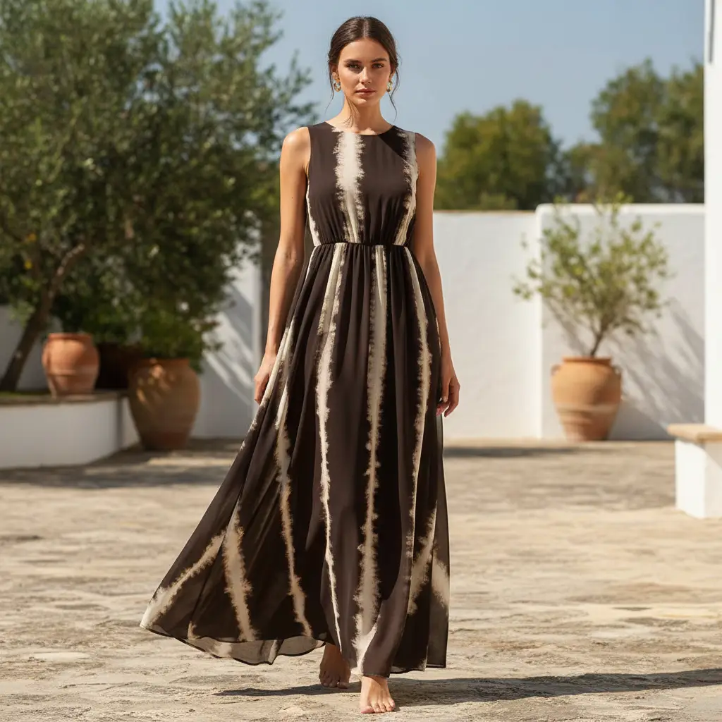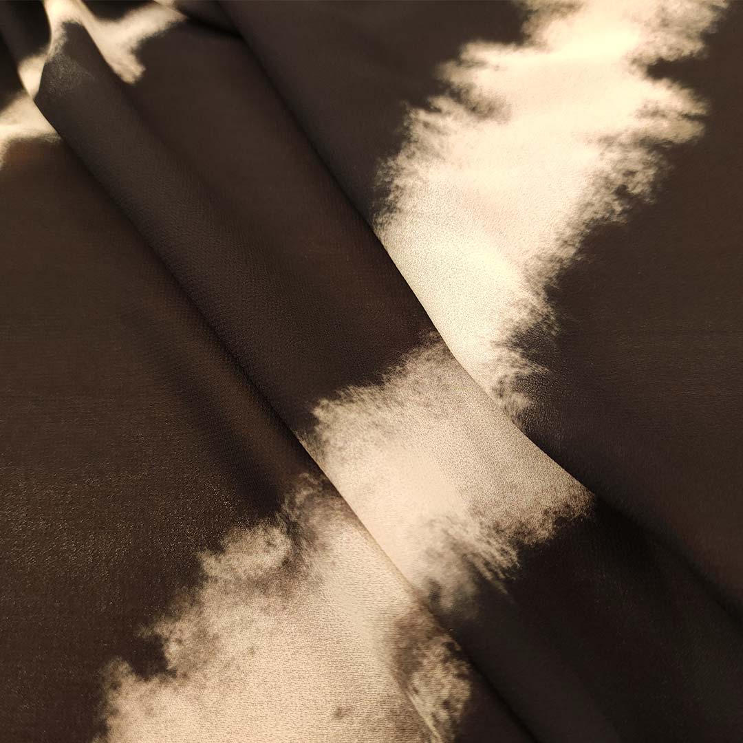 Tessuto Georgette a fantasia motivo astratto nero – panna – tortora