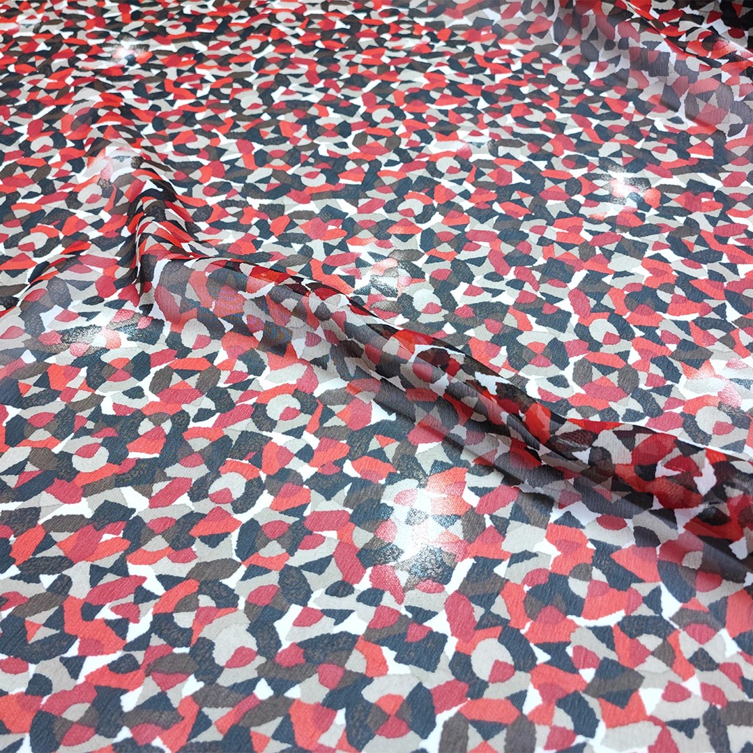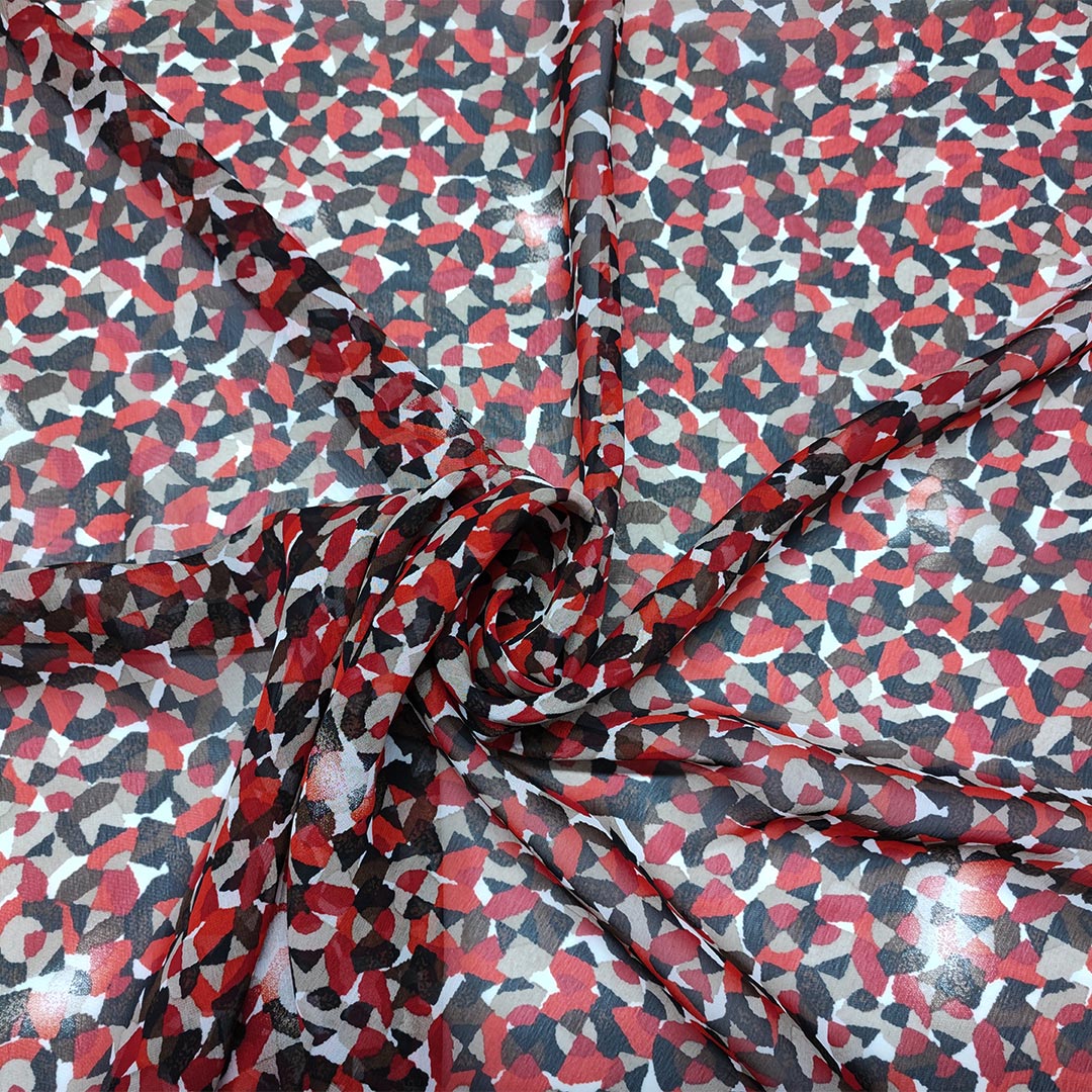 Tessuto Georgette a fantasia motivo astratto ruggine – panna – nero