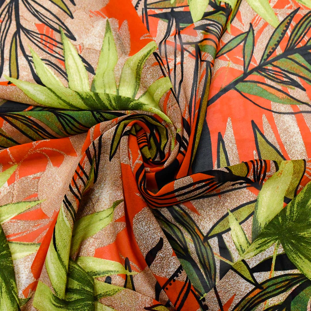 Tessuto Georgette a fantasia motivo floreale arancione – beige – verde