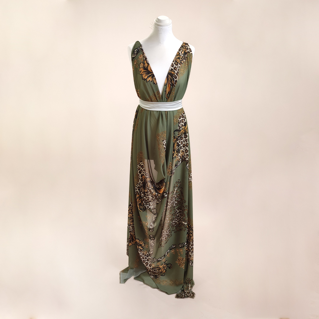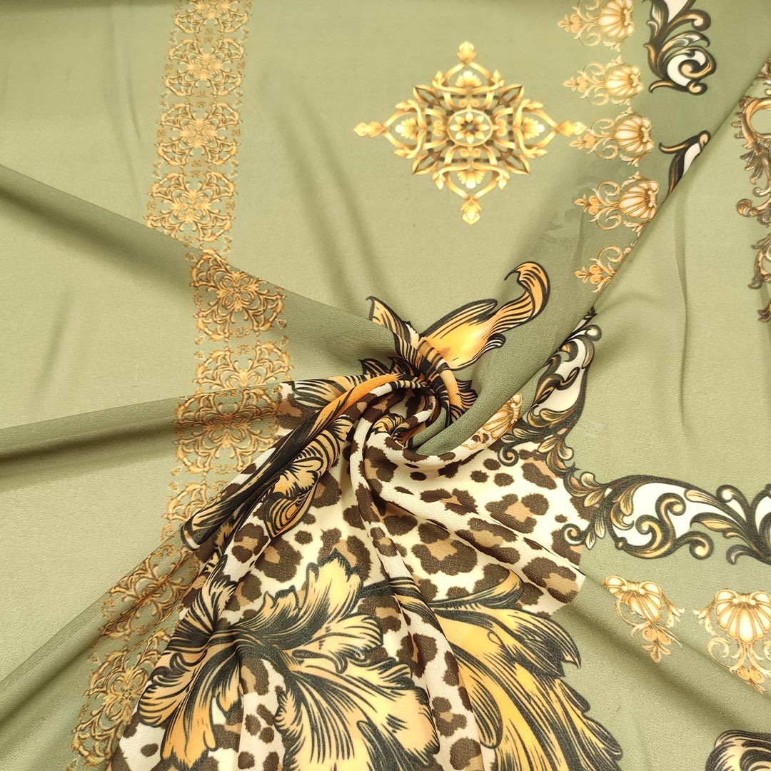 Tessuto Georgette a fantasia motivo floreale barocco verde – giallo