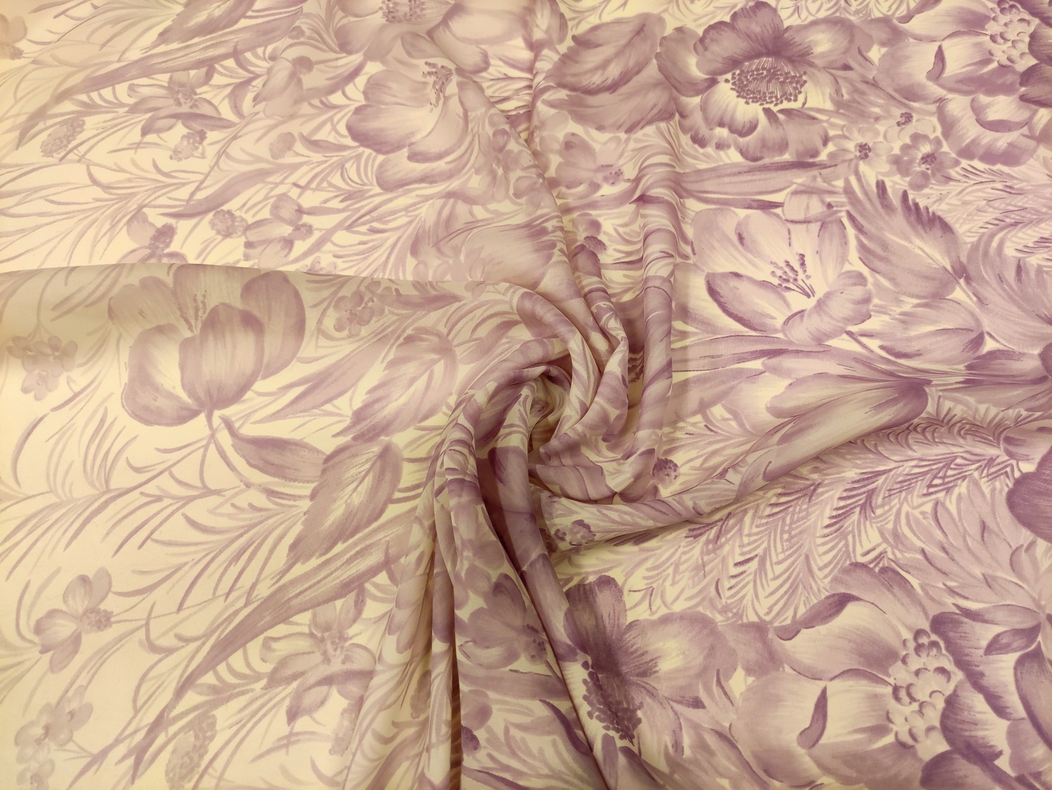 Tessuto Georgette a fantasia motivo floreale beige – lavanda