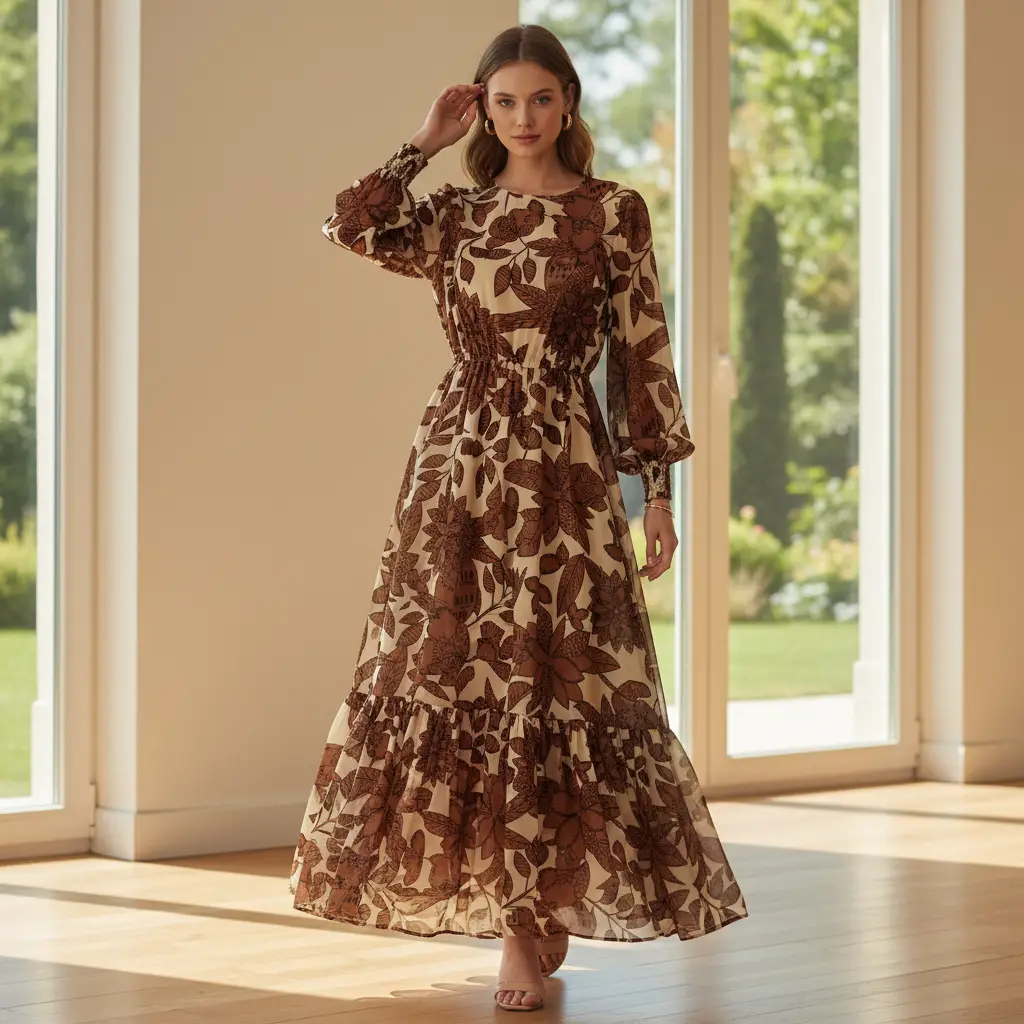 Tessuto Georgette a fantasia motivo floreale beige – marrone – nero