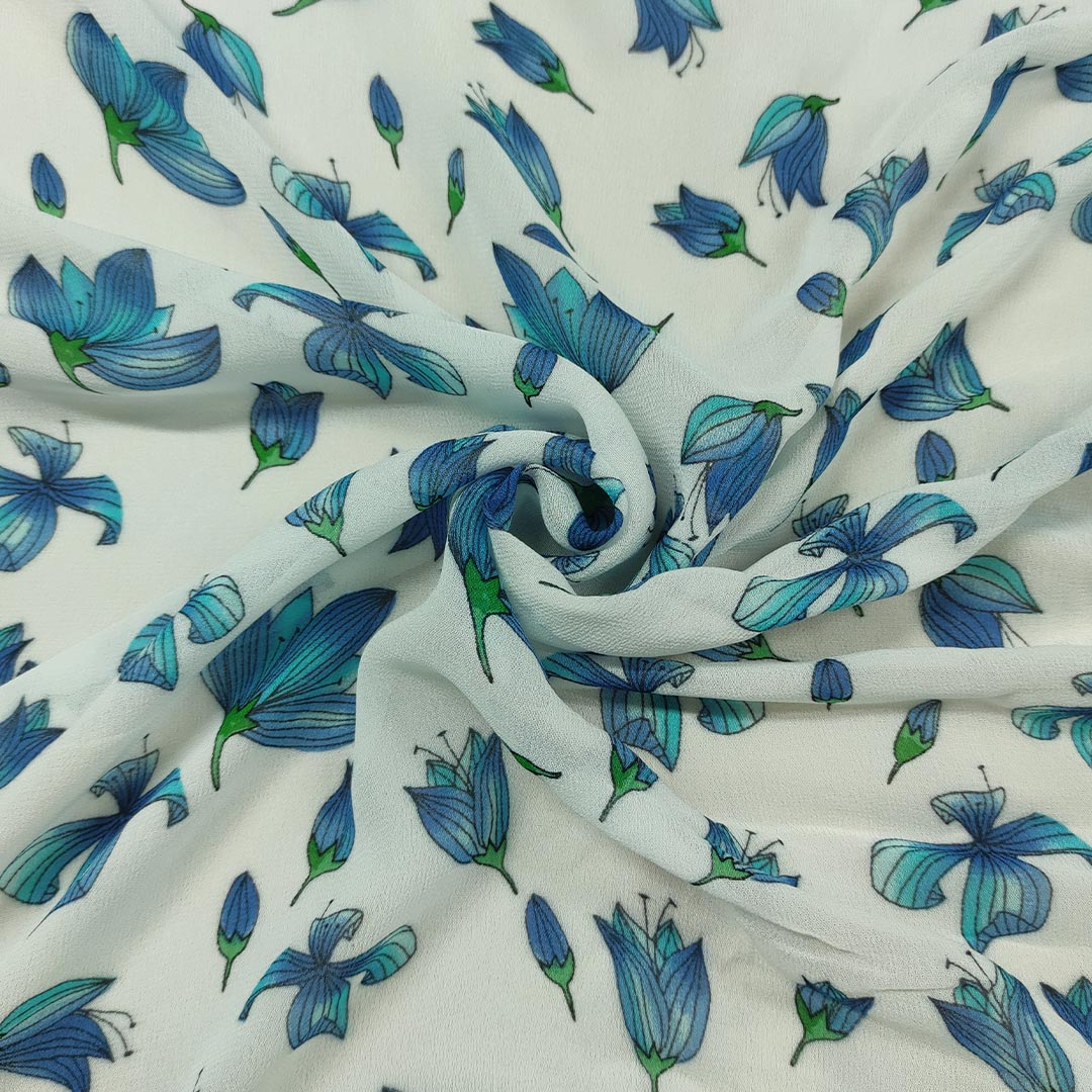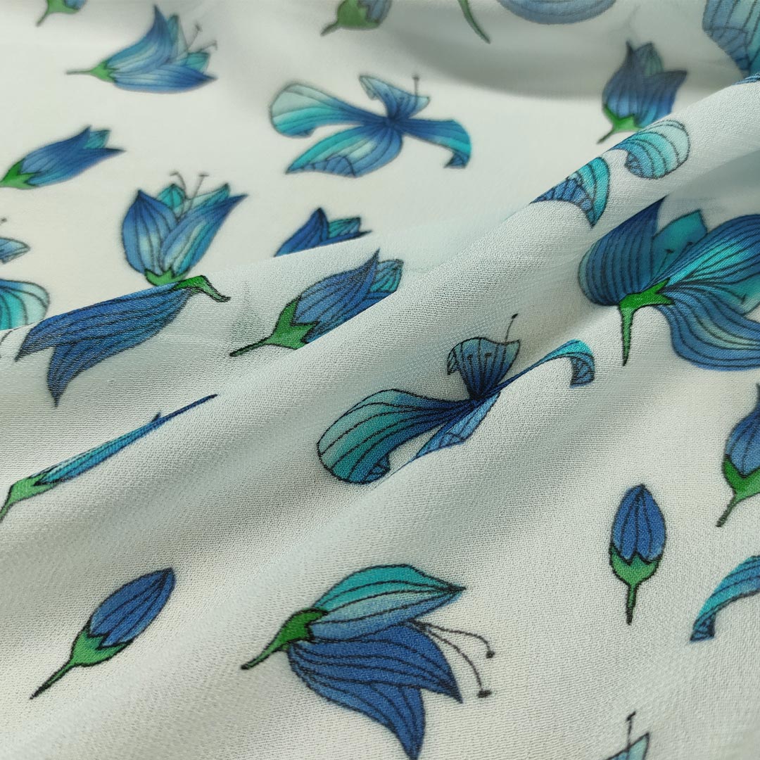Tessuto Georgette a fantasia motivo floreale bianco – azzurro – verde