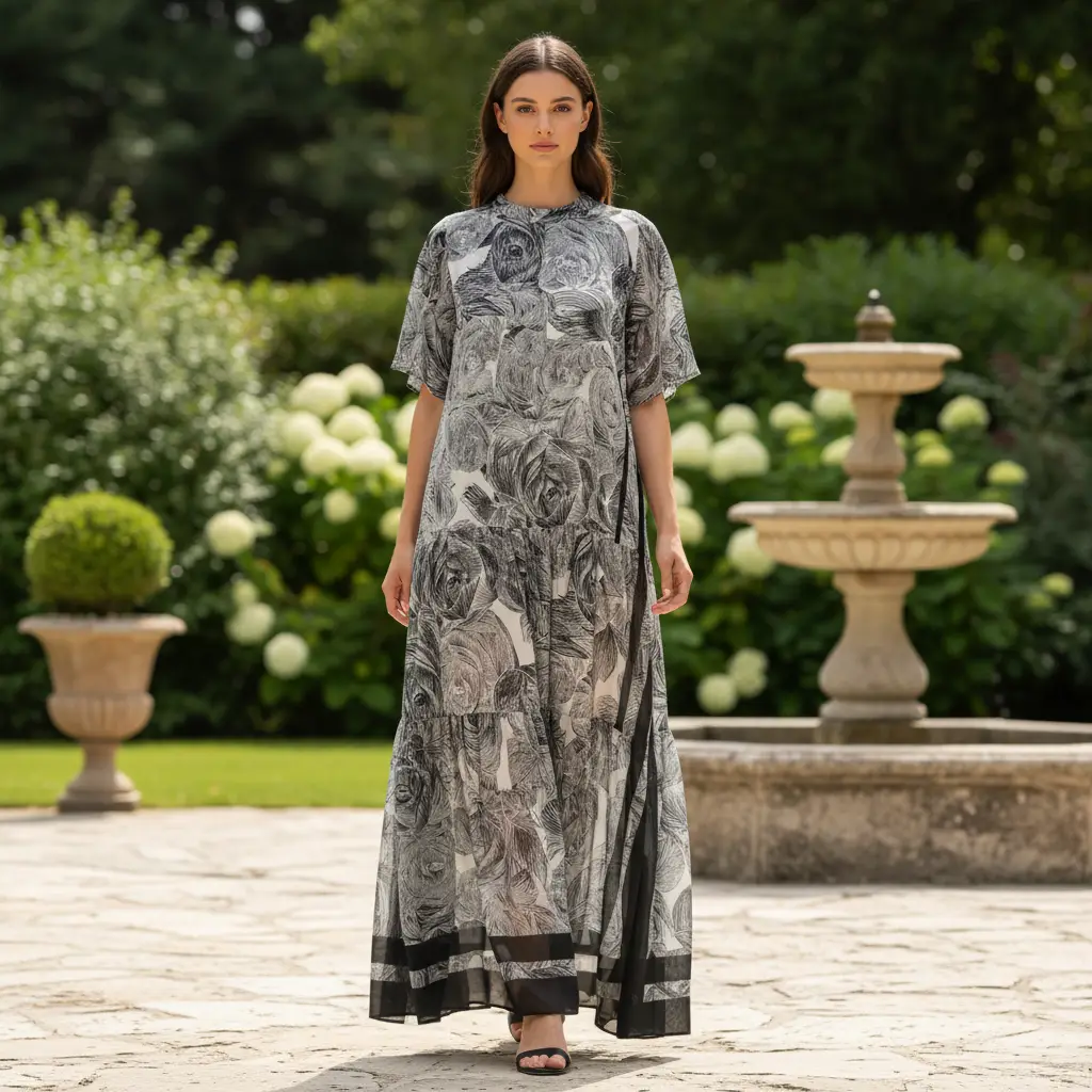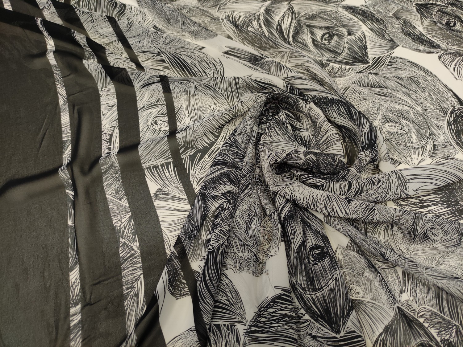 Tessuto Georgette a fantasia motivo floreale bianco – nero