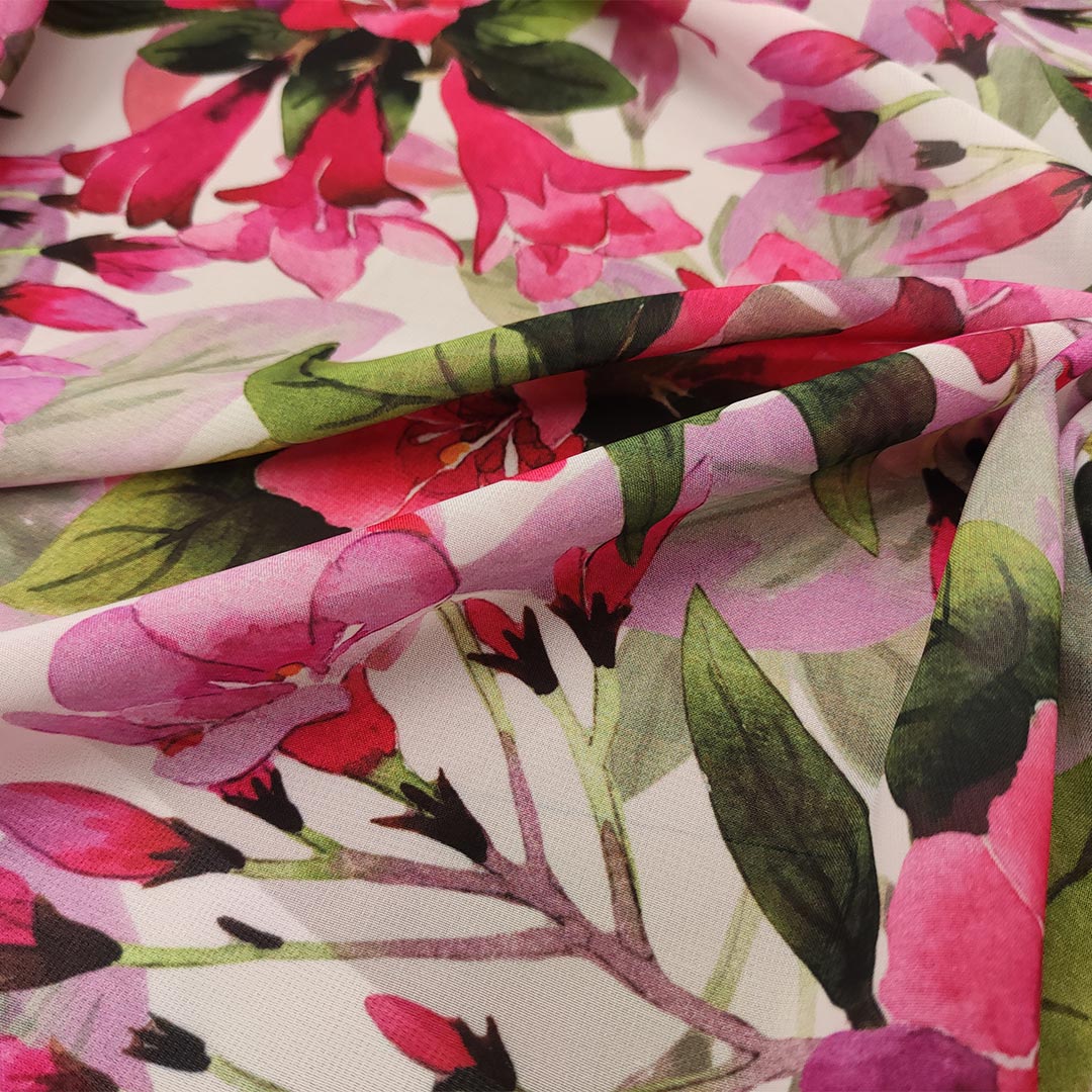 Tessuto Georgette a fantasia motivo floreale bianco – verde – rosa – fucsia