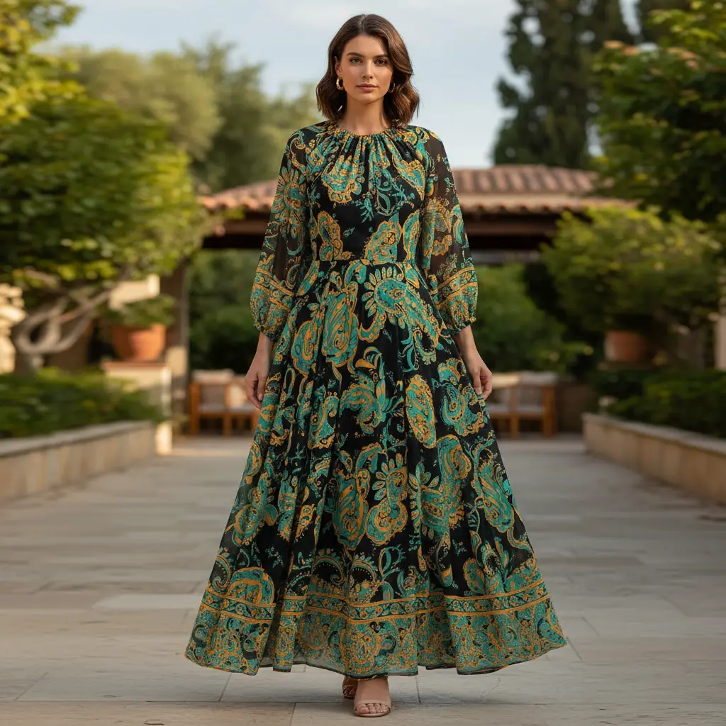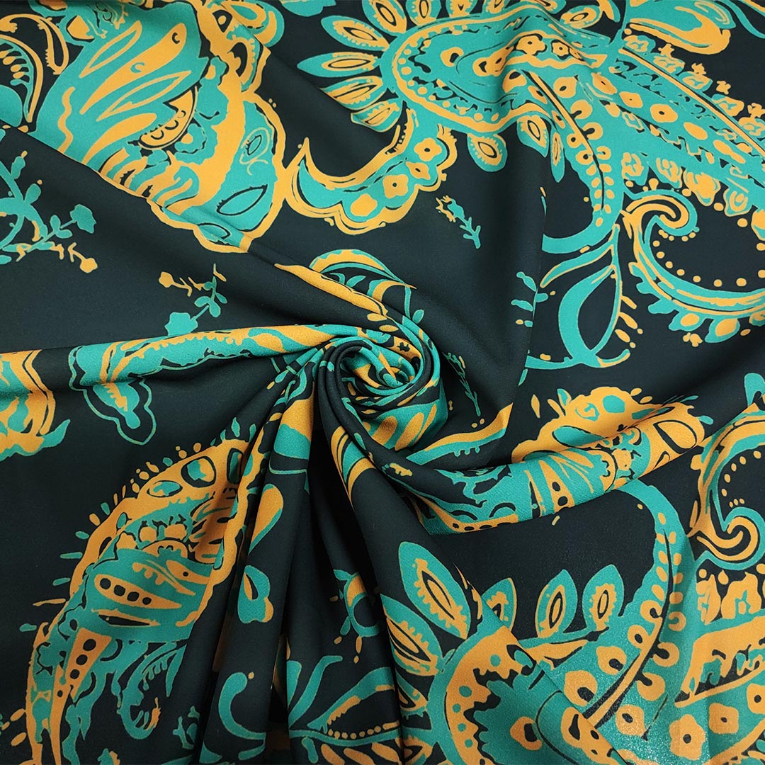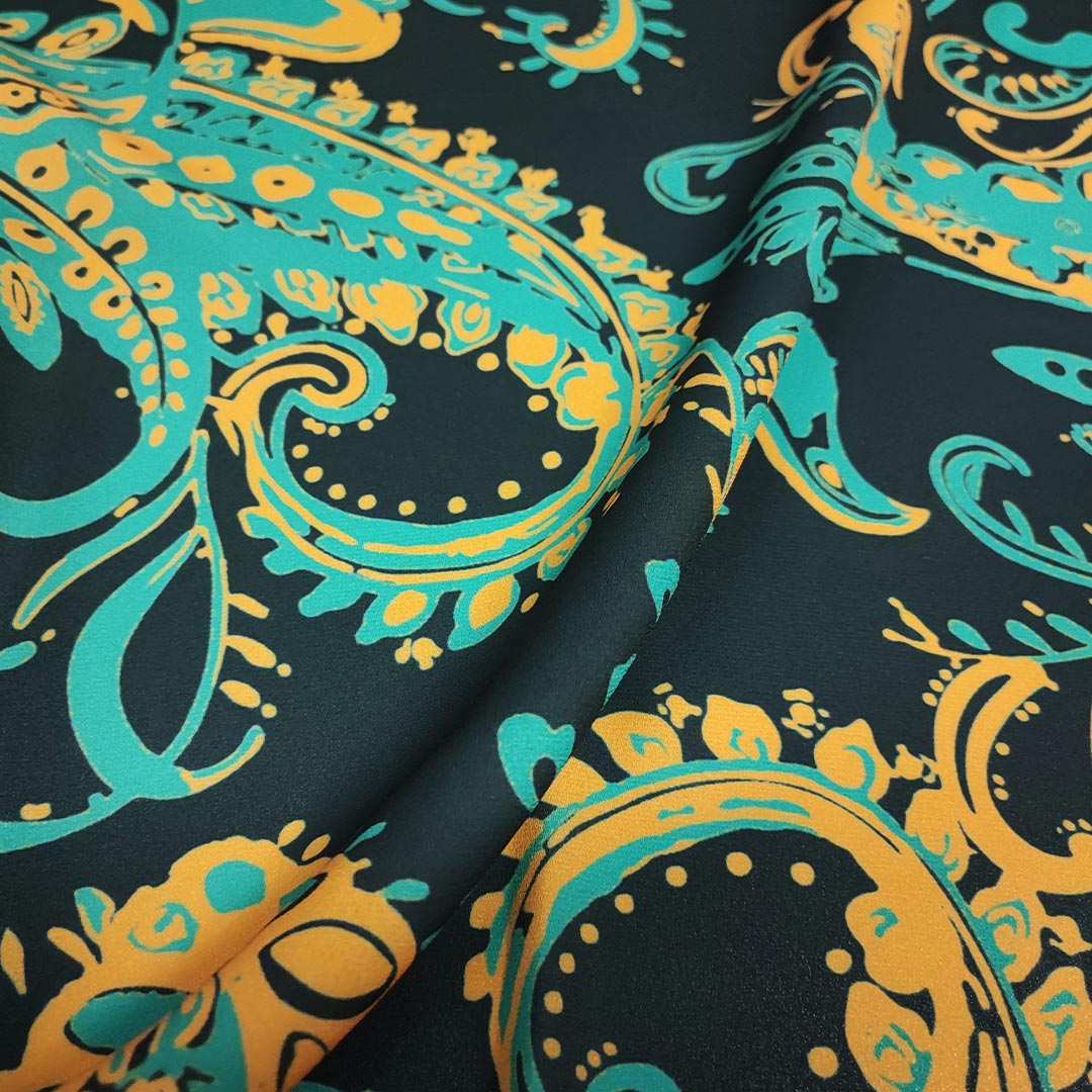 Tessuto Georgette a fantasia motivo floreale cashmere nero – giallo – verde
