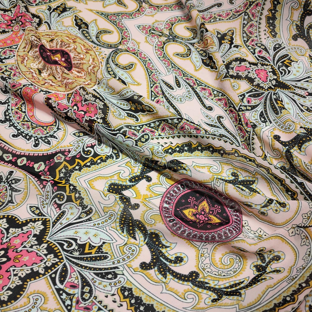 Tessuto Georgette a fantasia motivo floreale cashmere rosa – nero – verde salvia