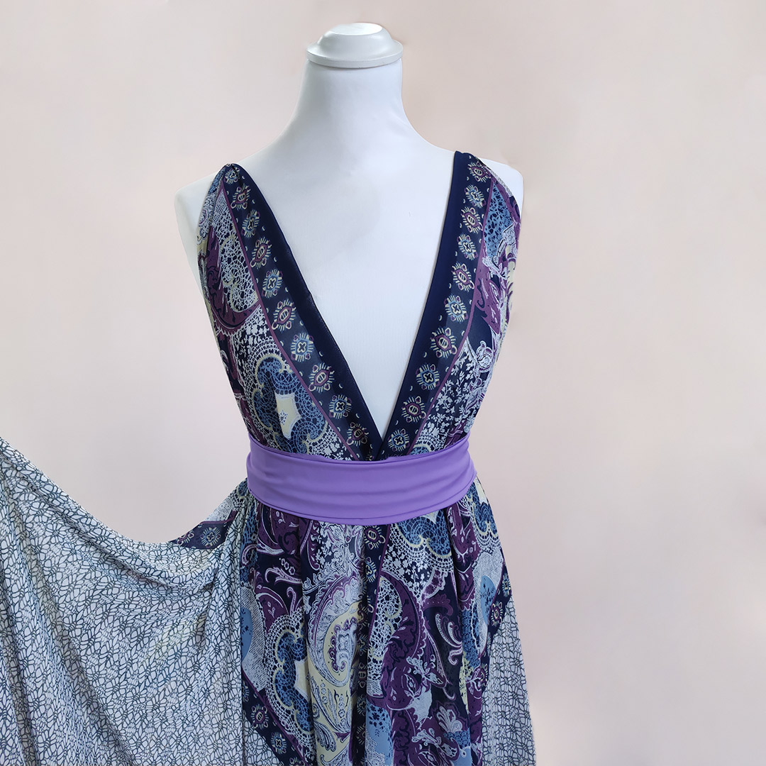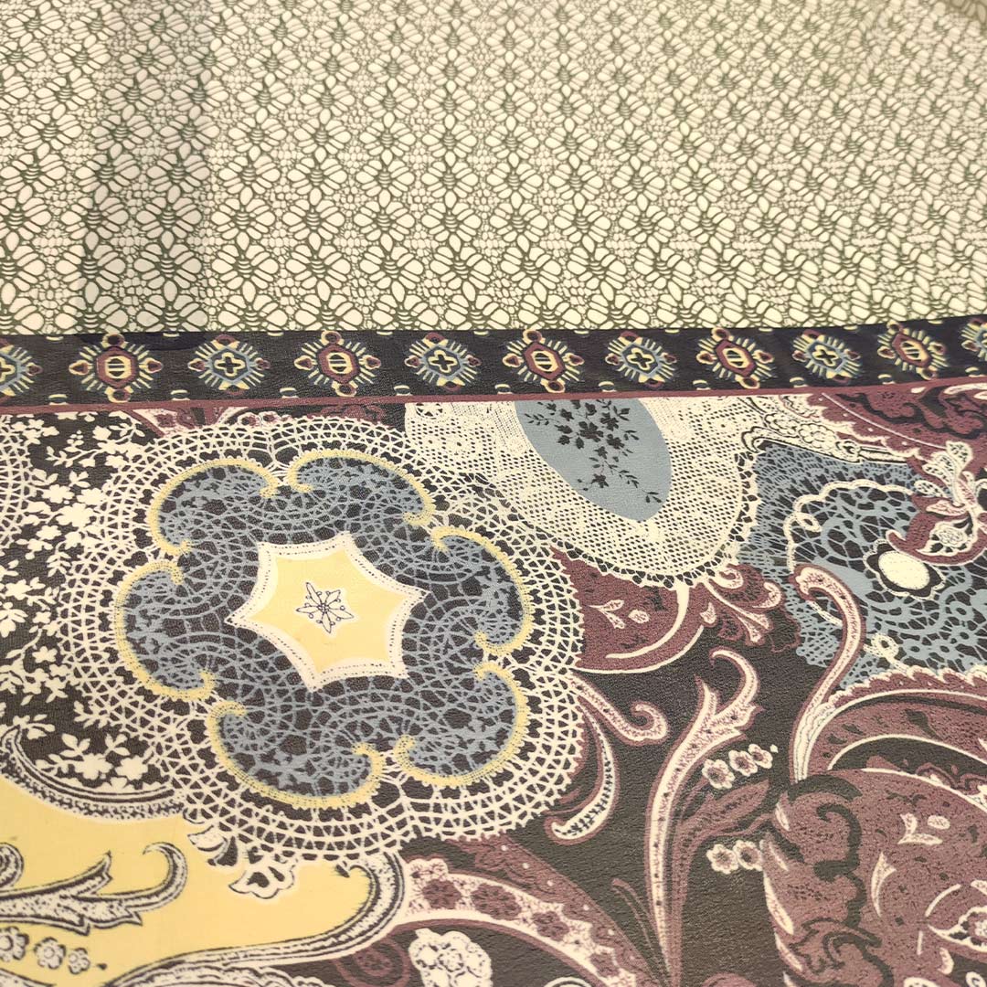 Tessuto Georgette a fantasia dalla mano fine, morbida e granulosa, leggermente trasparente, si presta alla realizzazione di camicie, abiti, gonne e bluse.