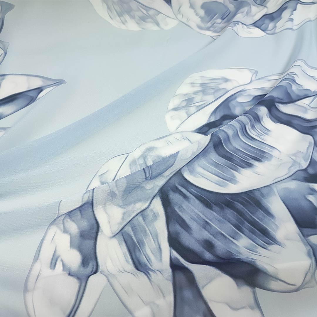 Tessuto Georgette a fantasia motivo floreale celeste – carta da zucchero