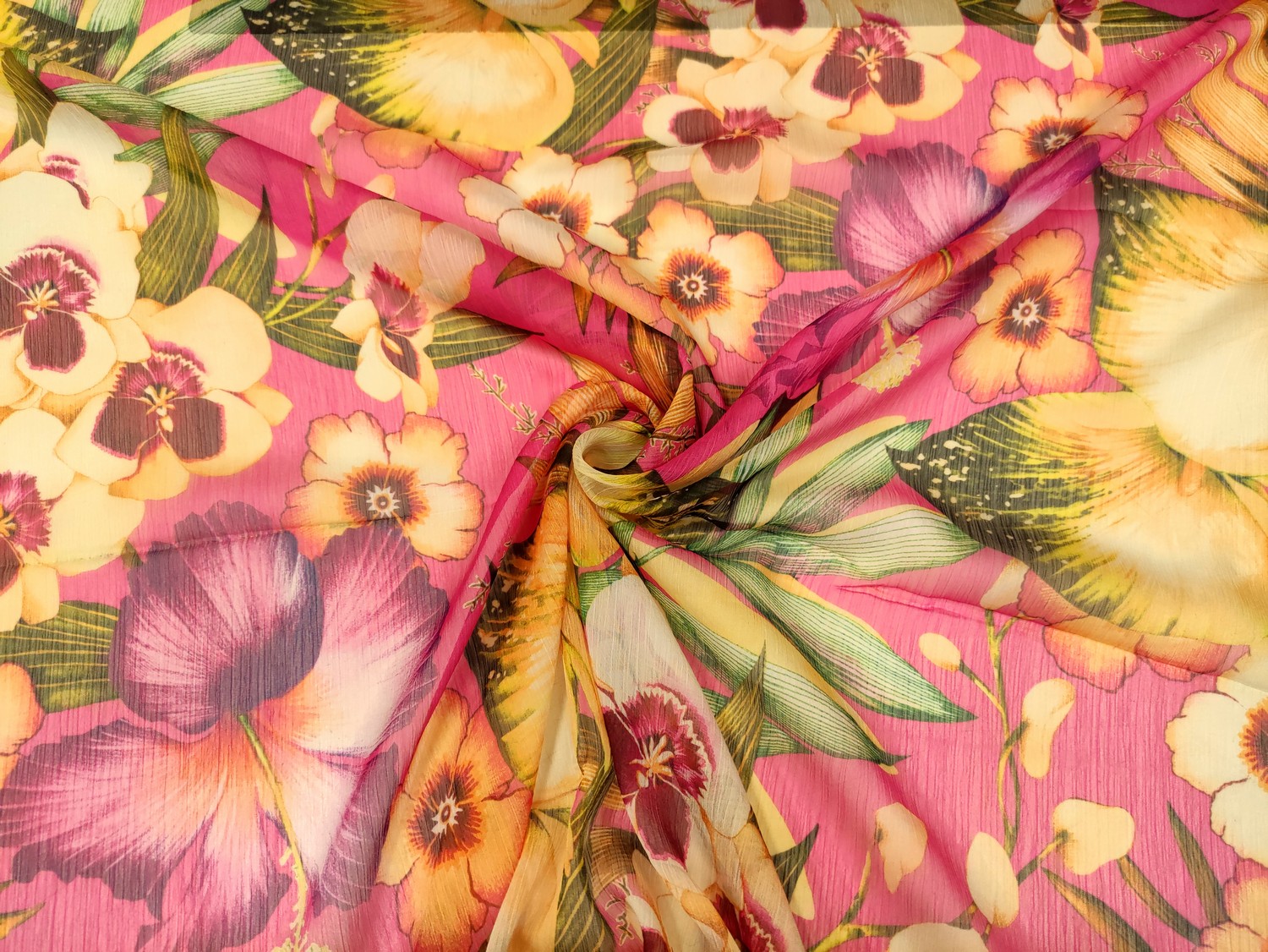 Tessuto Georgette a fantasia motivo floreale fucsia – giallo