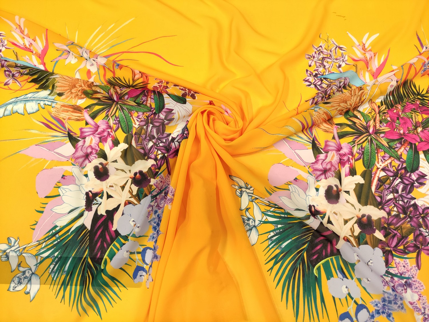 Tessuto Georgette a fantasia motivo floreale giallo – fucsia