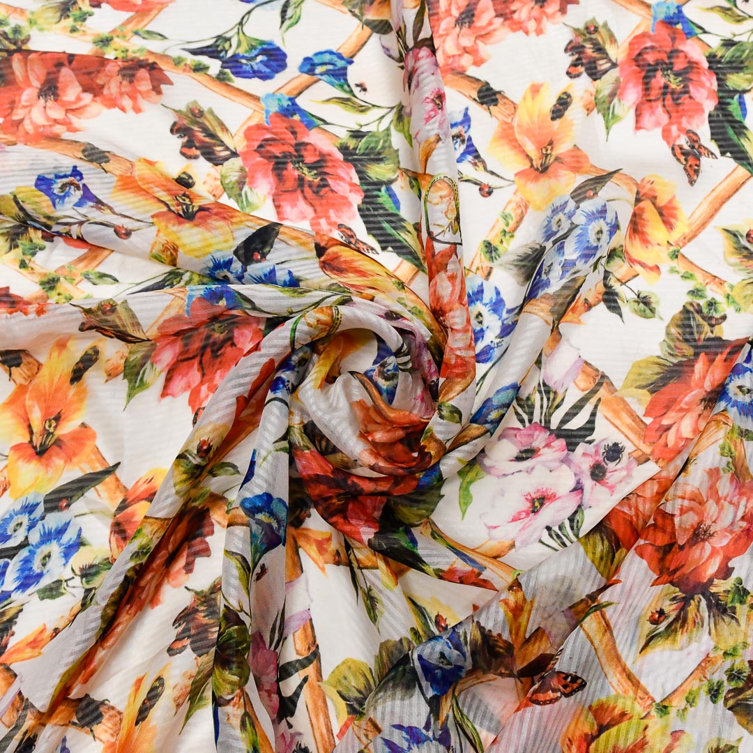 Tessuto Georgette a fantasia motivo floreale giallo – rosso – blu