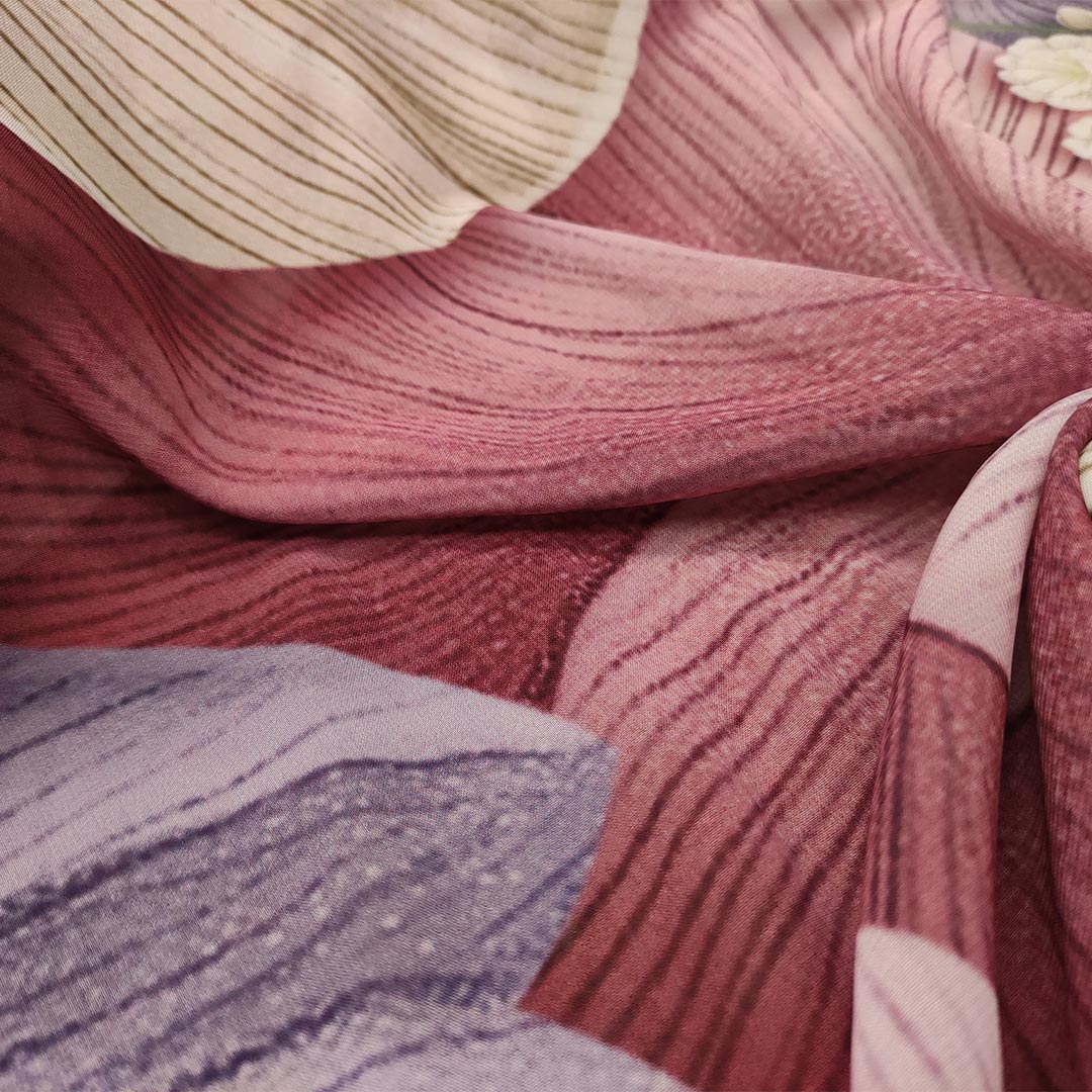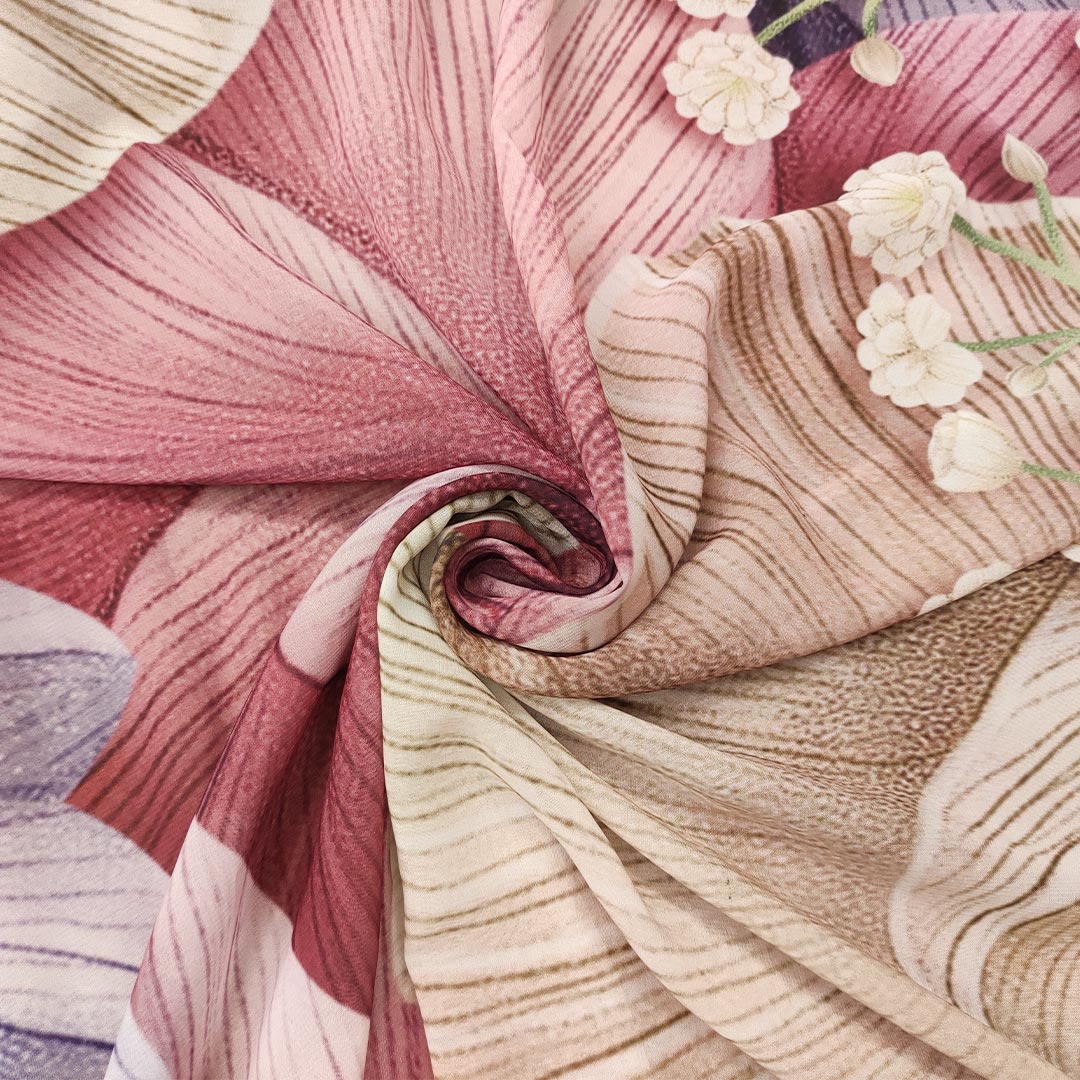 Tessuto Georgette a fantasia motivo floreale lilla – malva – beige