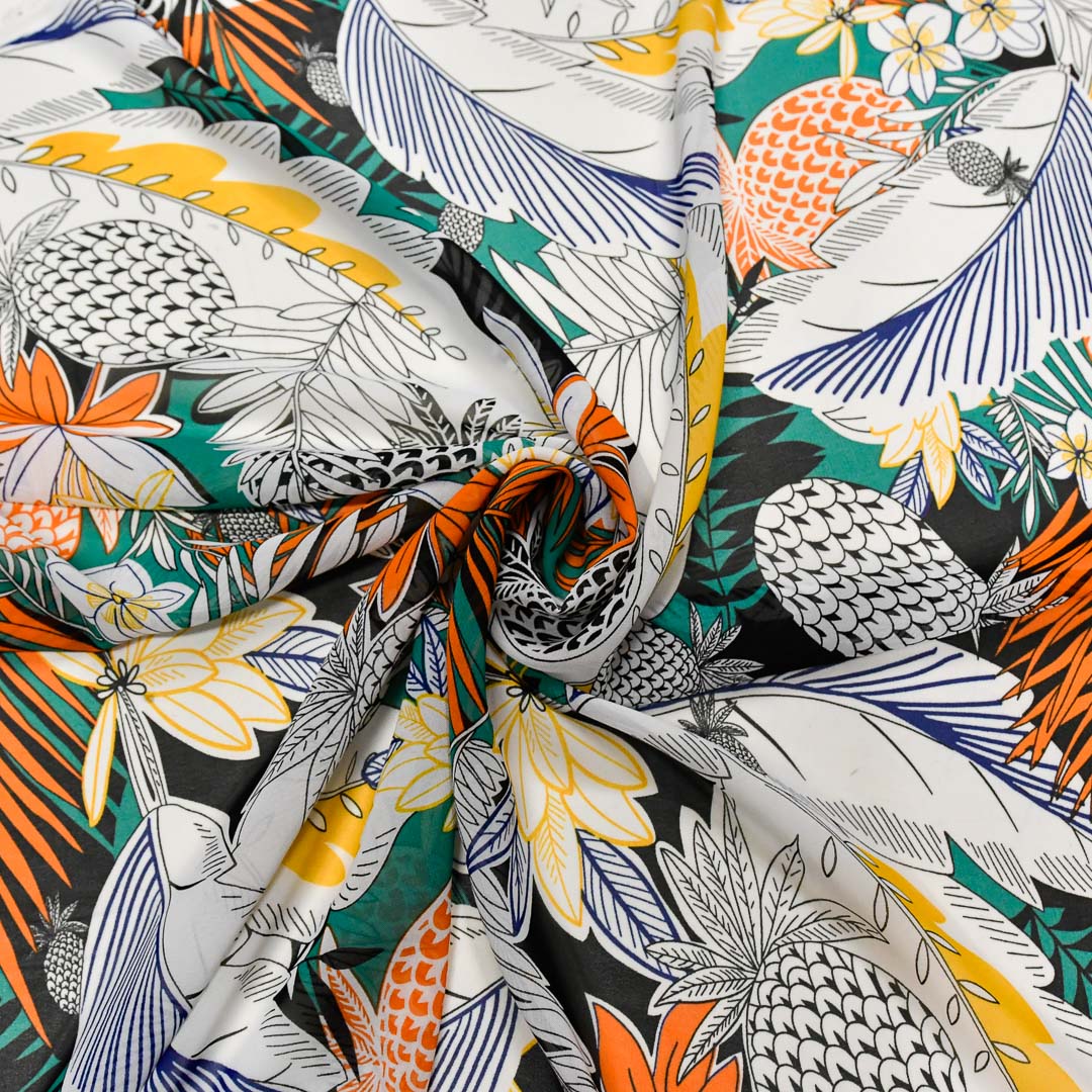 Tessuto Georgette a fantasia motivo floreale nero – arancione – giallo