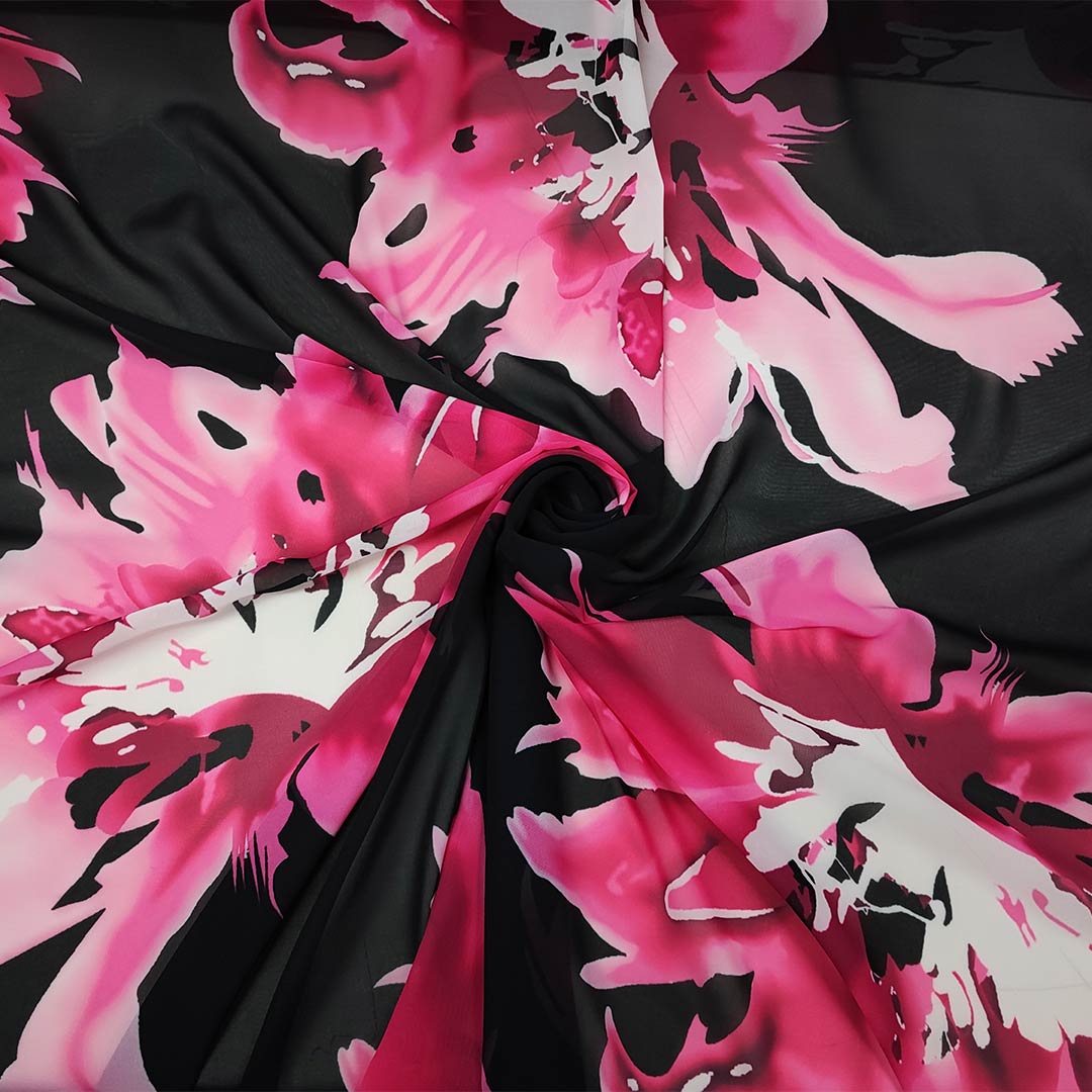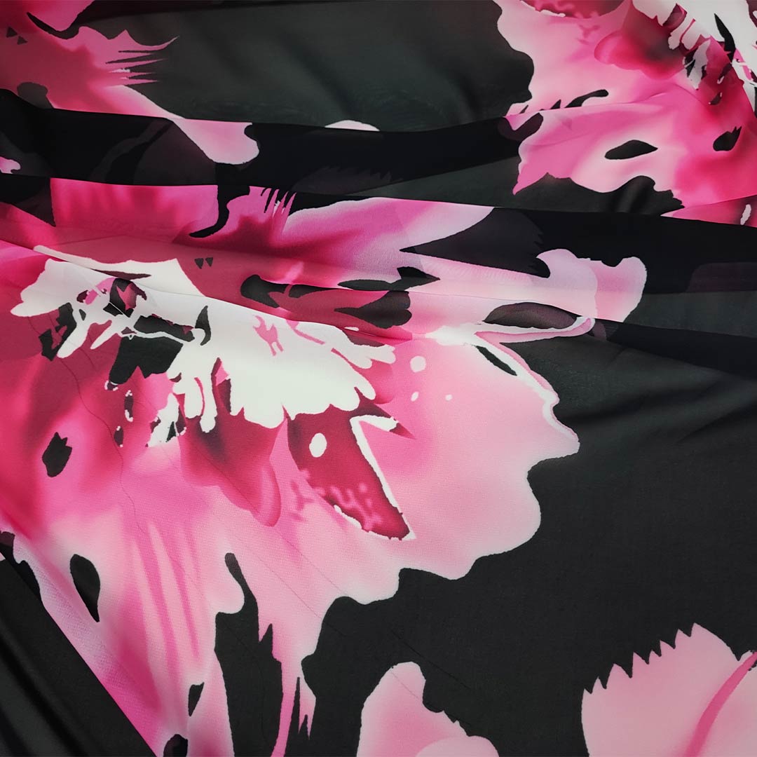Tessuto Georgette a fantasia motivo floreale nero – bianco – fucsia