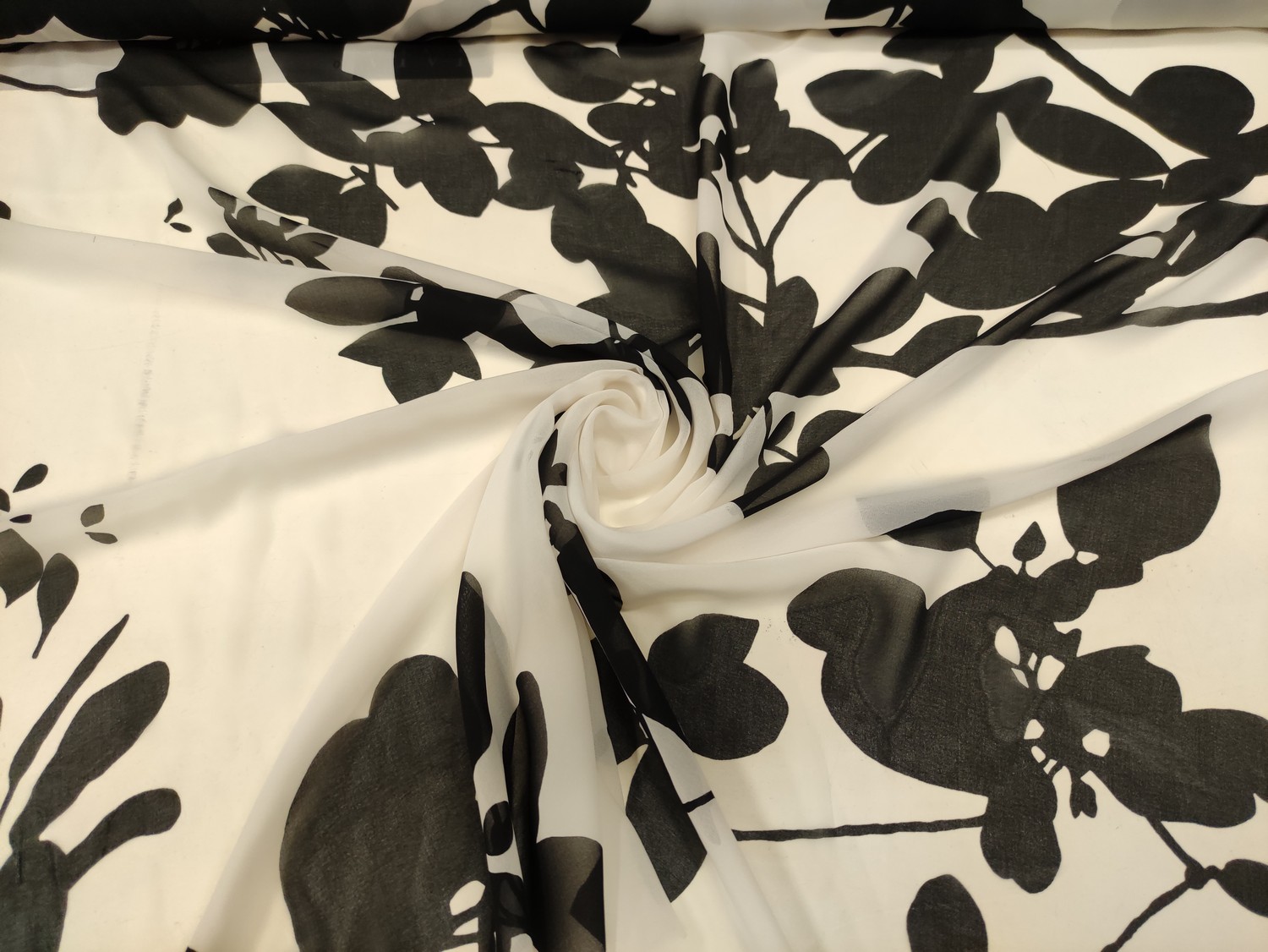 Tessuto Georgette a fantasia motivo floreale nero – bianco
