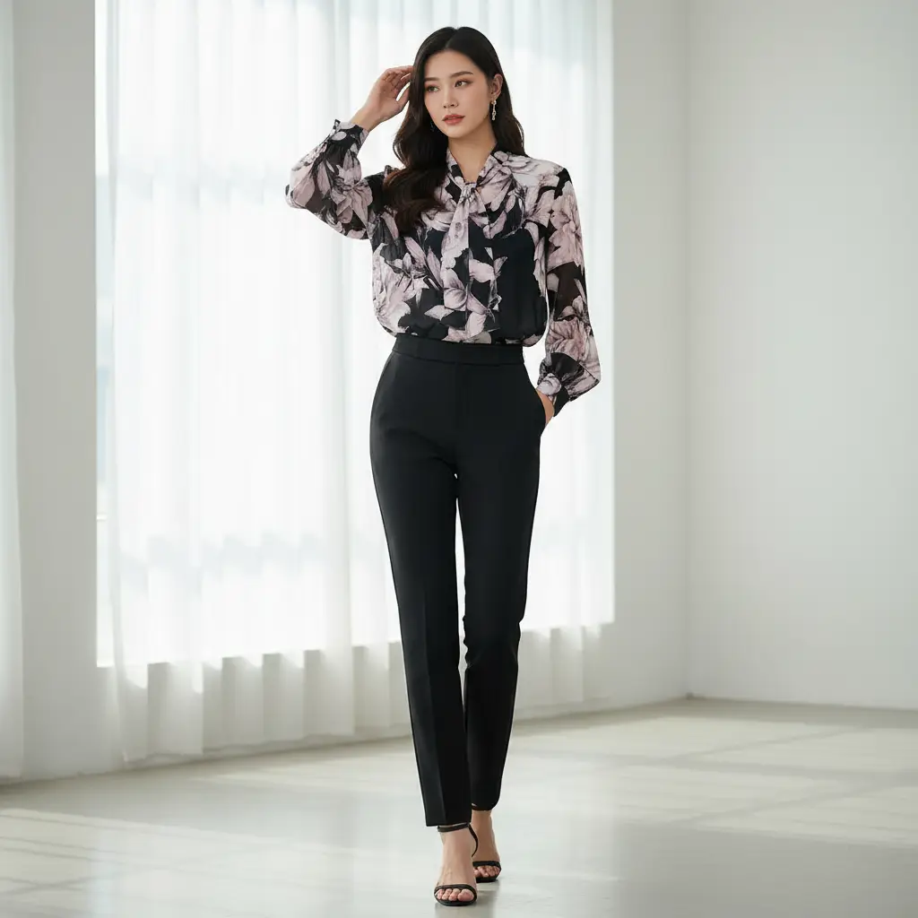 Tessuto Georgette a fantasia dalla mano fine, morbida e granulosa, leggermente trasparente, si presta alla realizzazione di camicie, abiti, gonne e bluse.