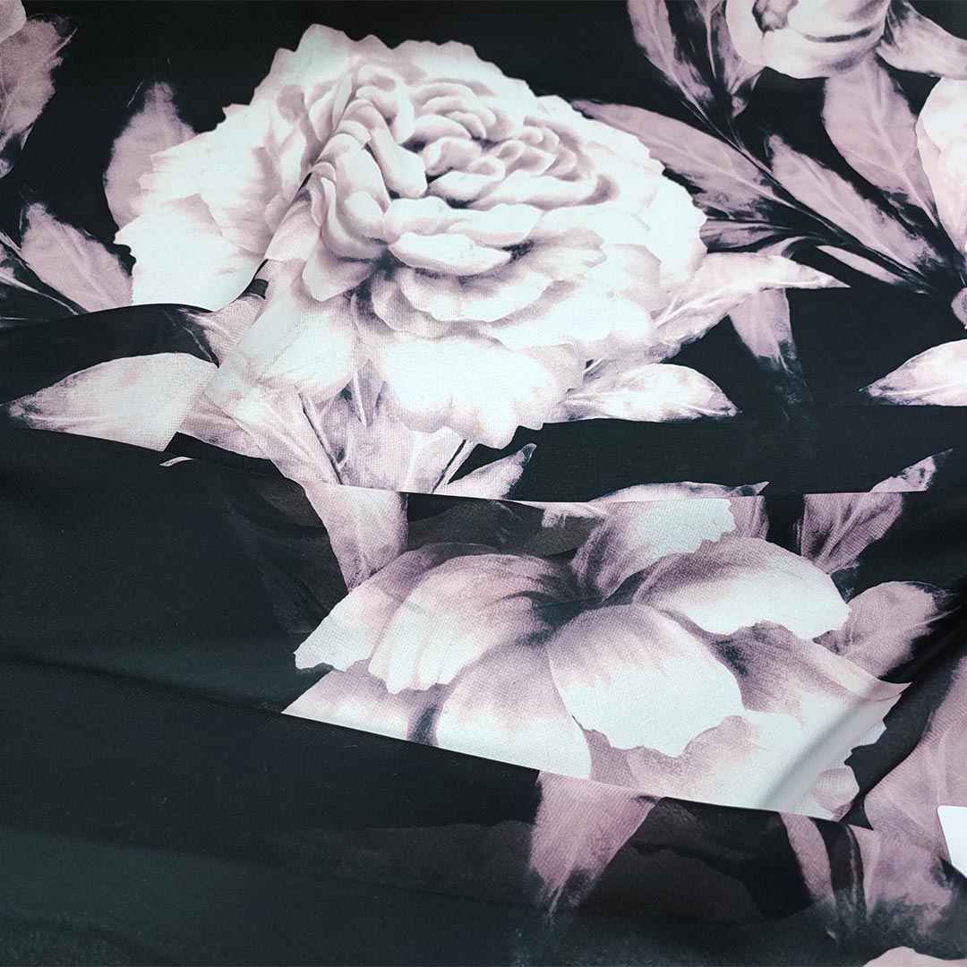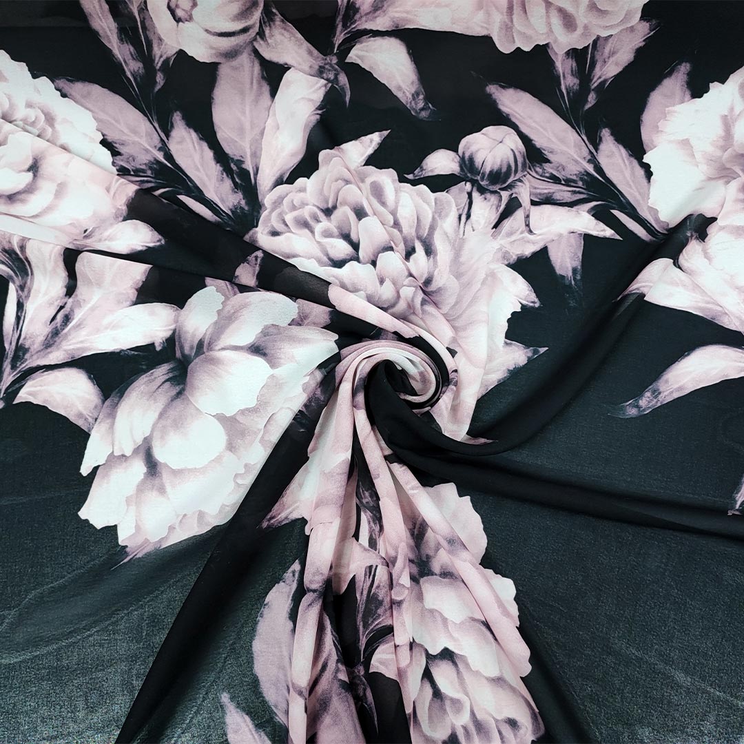 Tessuto Georgette a fantasia motivo floreale nero – rosa chiaro