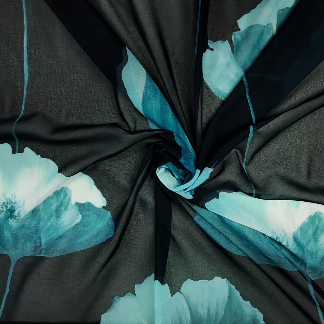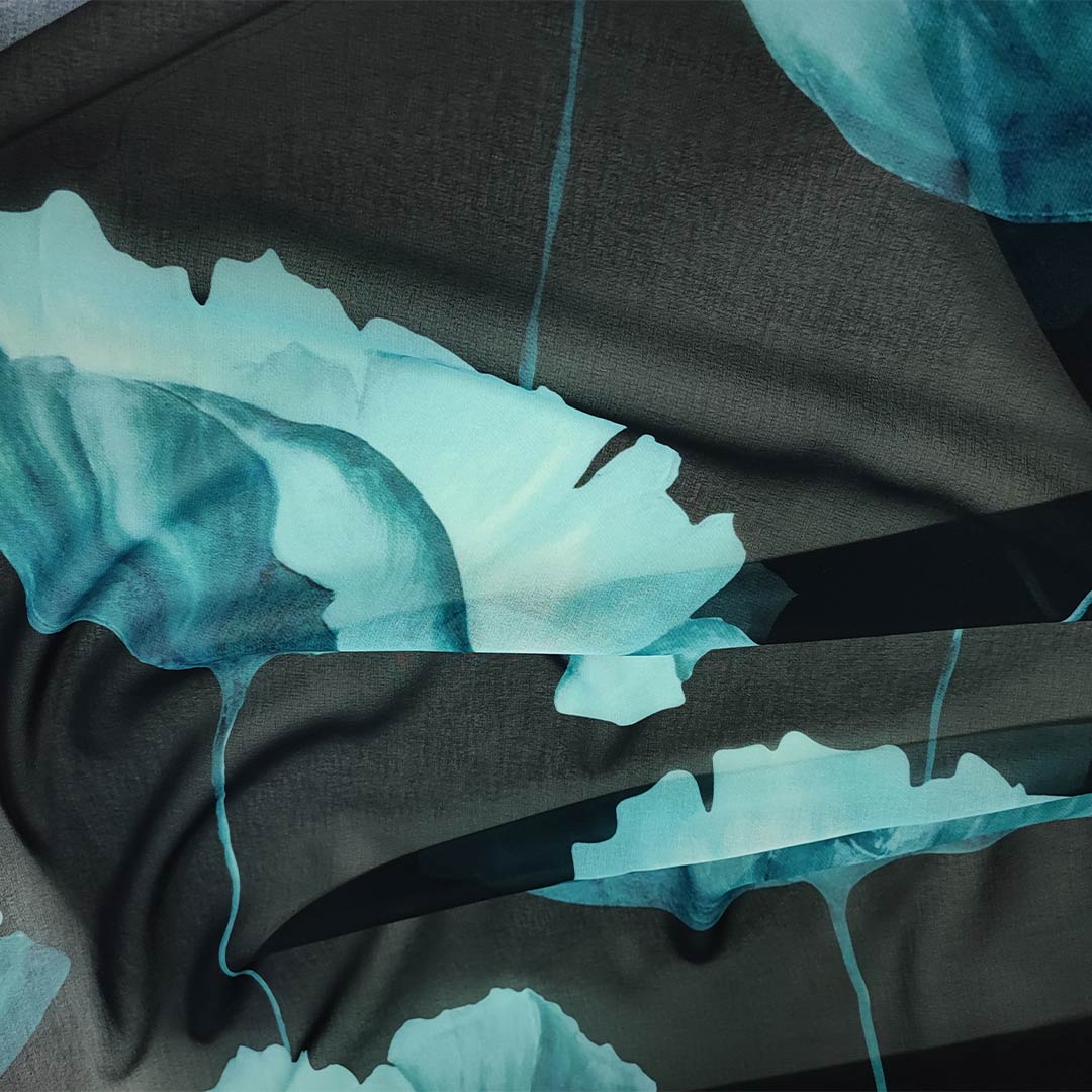 Tessuto Georgette a fantasia motivo floreale nero – verde petrolio