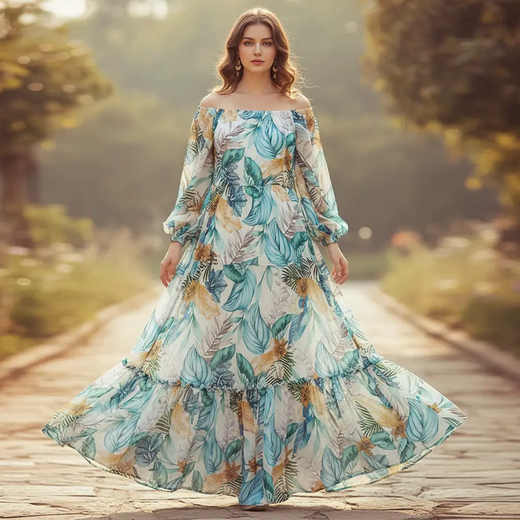 Tessuto Georgette a fantasia dalla mano fine, morbida e granulosa, leggermente trasparente, si presta alla realizzazione di camicie, abiti, gonne e bluse.