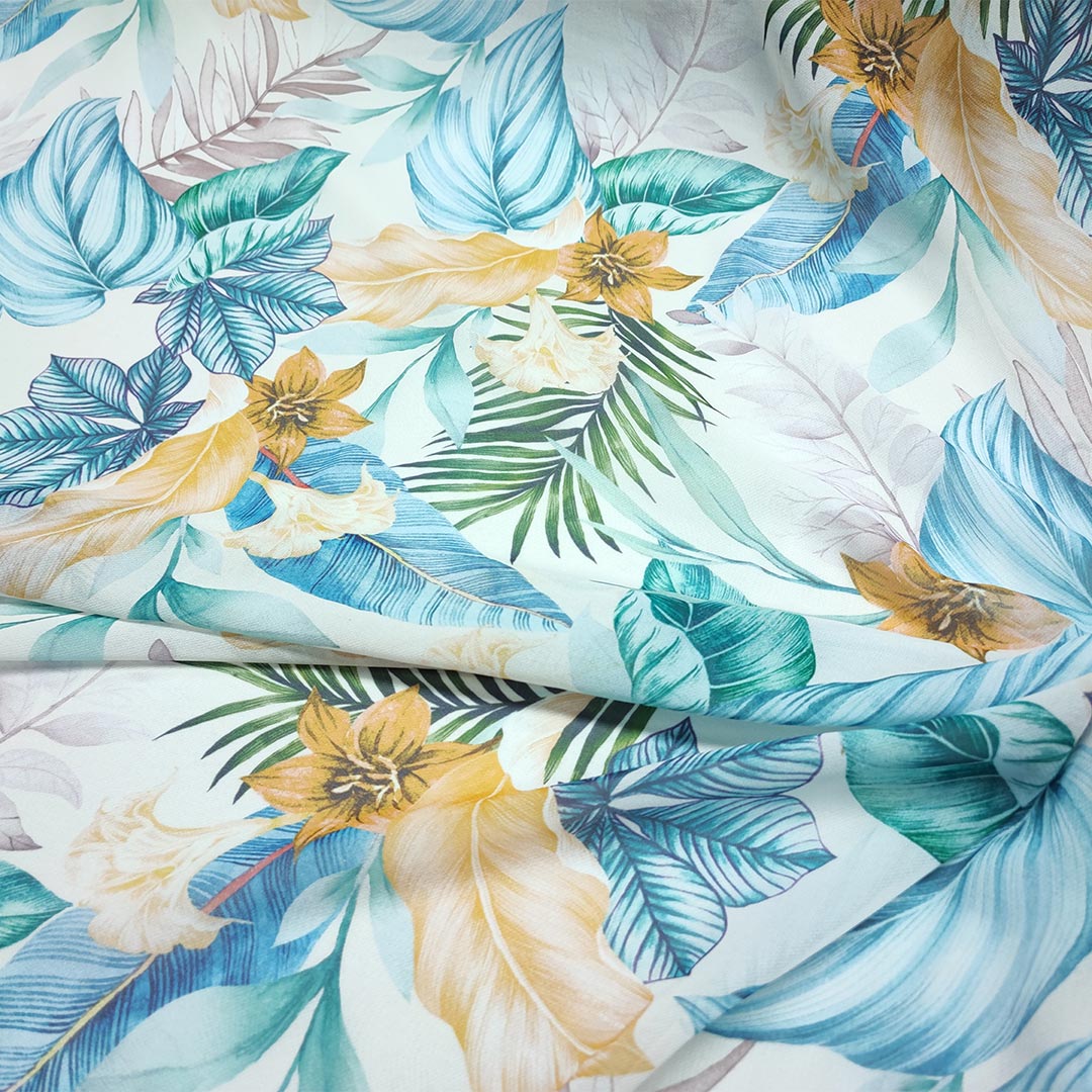 Tessuto Georgette a fantasia motivo floreale panna – ocra – verde tiffany