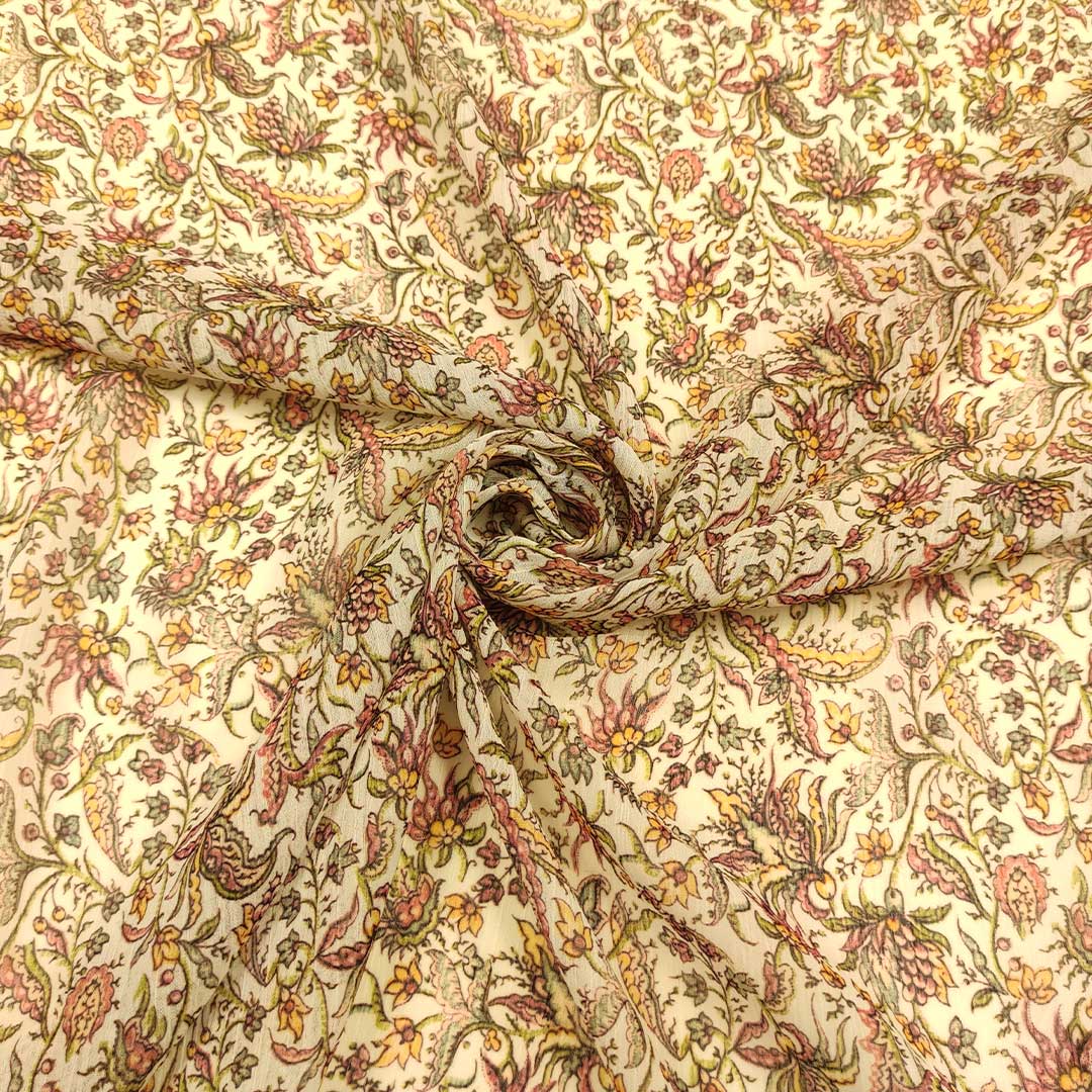 Tessuto Georgette a fantasia motivo floreale panna – verde – lampone