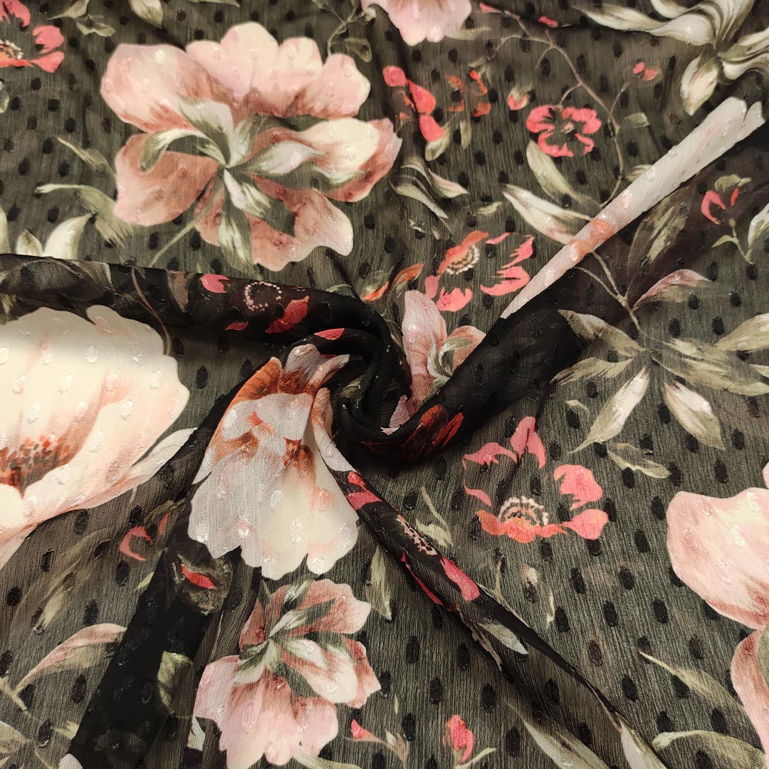Tessuto Georgette a fantasia motivo floreale rosa – nero – rosso