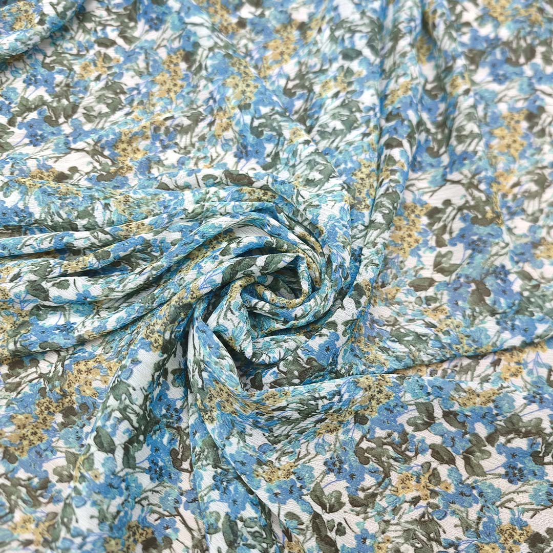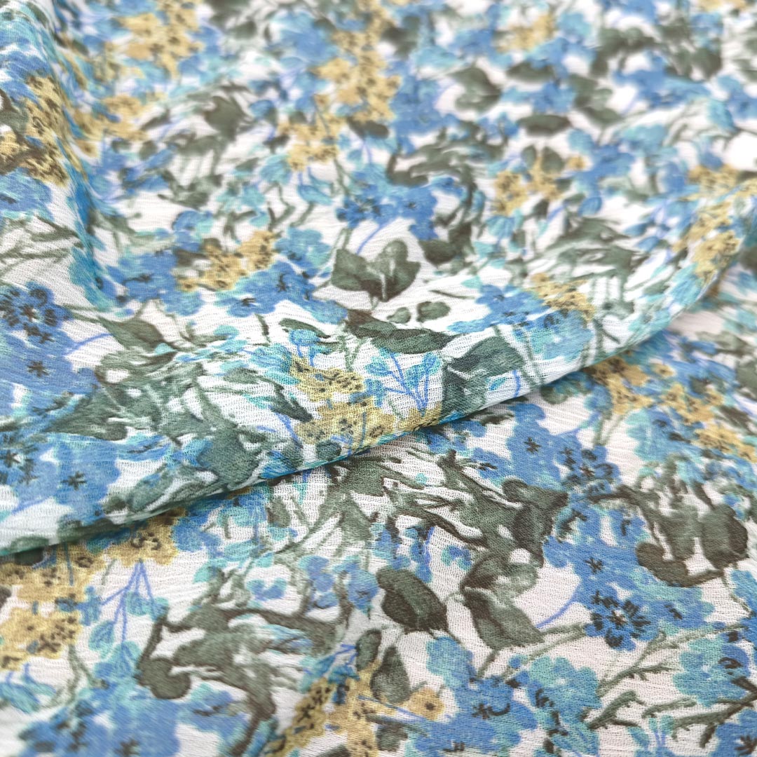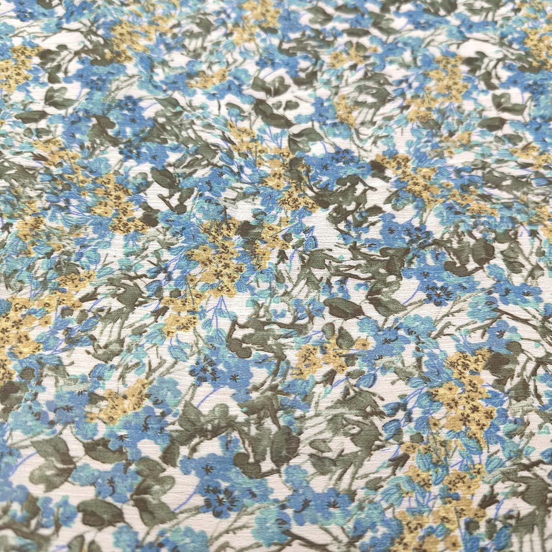 Tessuto Georgette a fantasia motivo floreale turchese – giallo – bianco