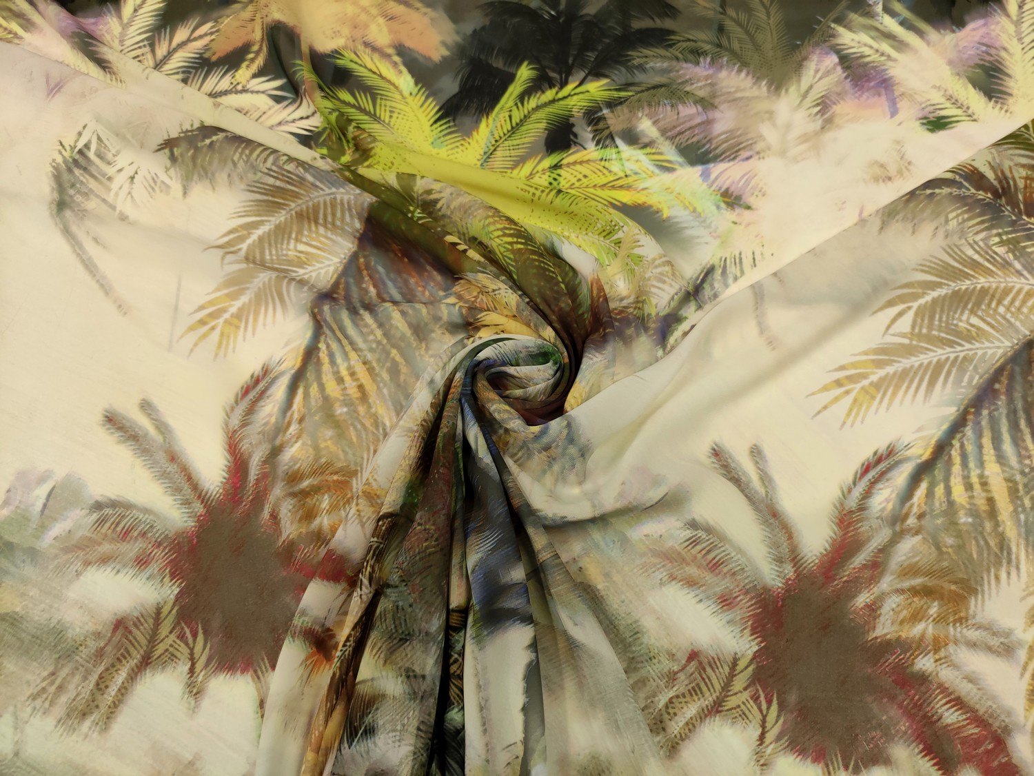 Tessuto Georgette a fantasia dalla mano fine, morbida e granulosa, leggermente trasparente, si presta alla realizzazione di camicie, abiti, gonne e bluse.
