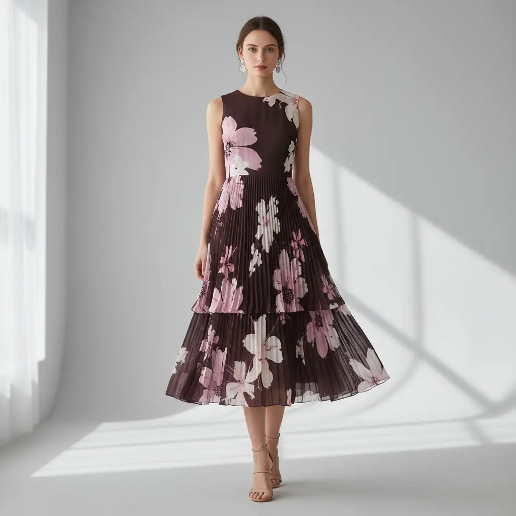 Tessuto Georgette a fantasia motivo floreale vinaccio – rosa