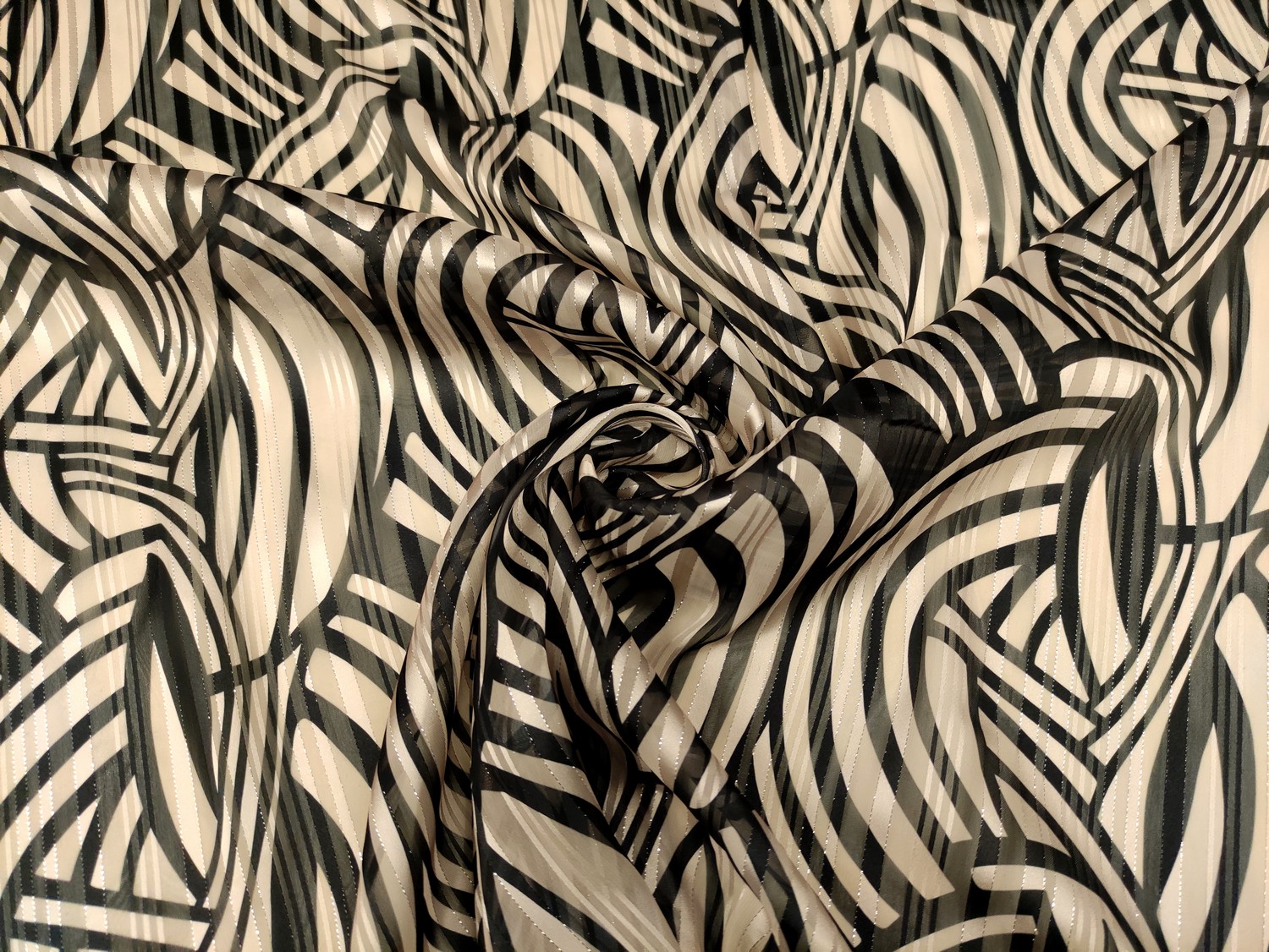 Tessuto Georgette a fantasia motivo geometrico beige – nero 01