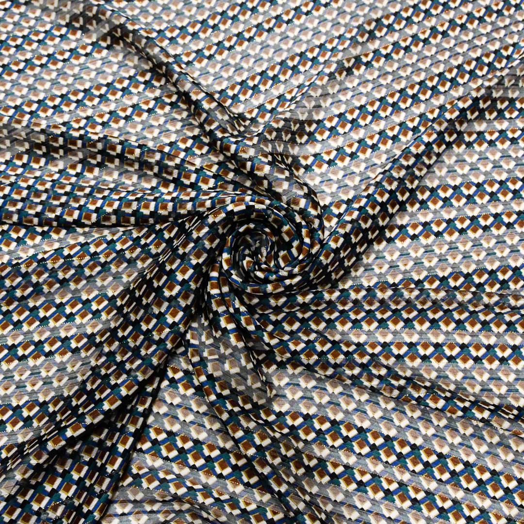 Tessuto Georgette a fantasia motivo geometrico panna – nero – verde
